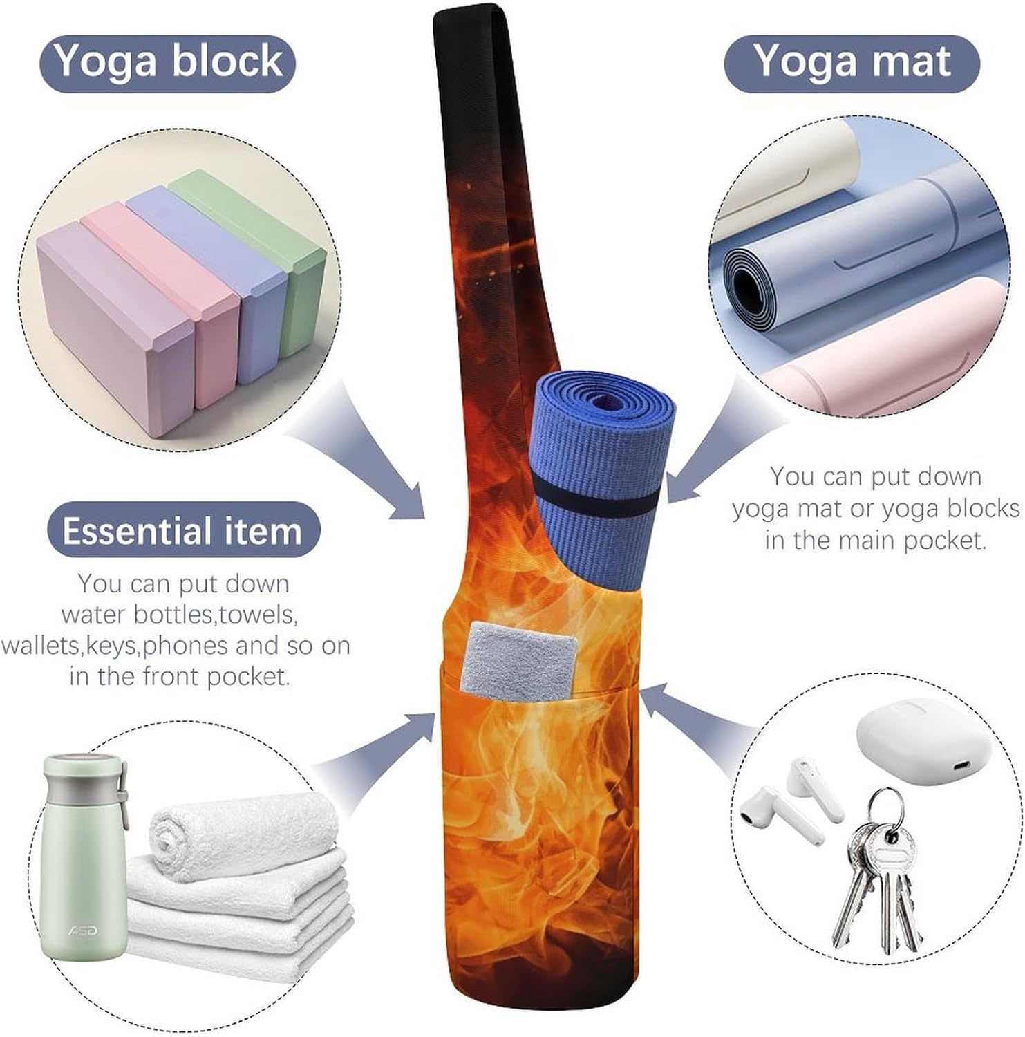 Spacious Design: The massive capability of this yoga mat carrying bag accommodates mats of all thicknesses, blocks, towels, and extra, with an inside zipper pocket for valuables like telephone and keys, and an exterior pocket for water bottles or different yoga gear. Good for these balancing health and every day life