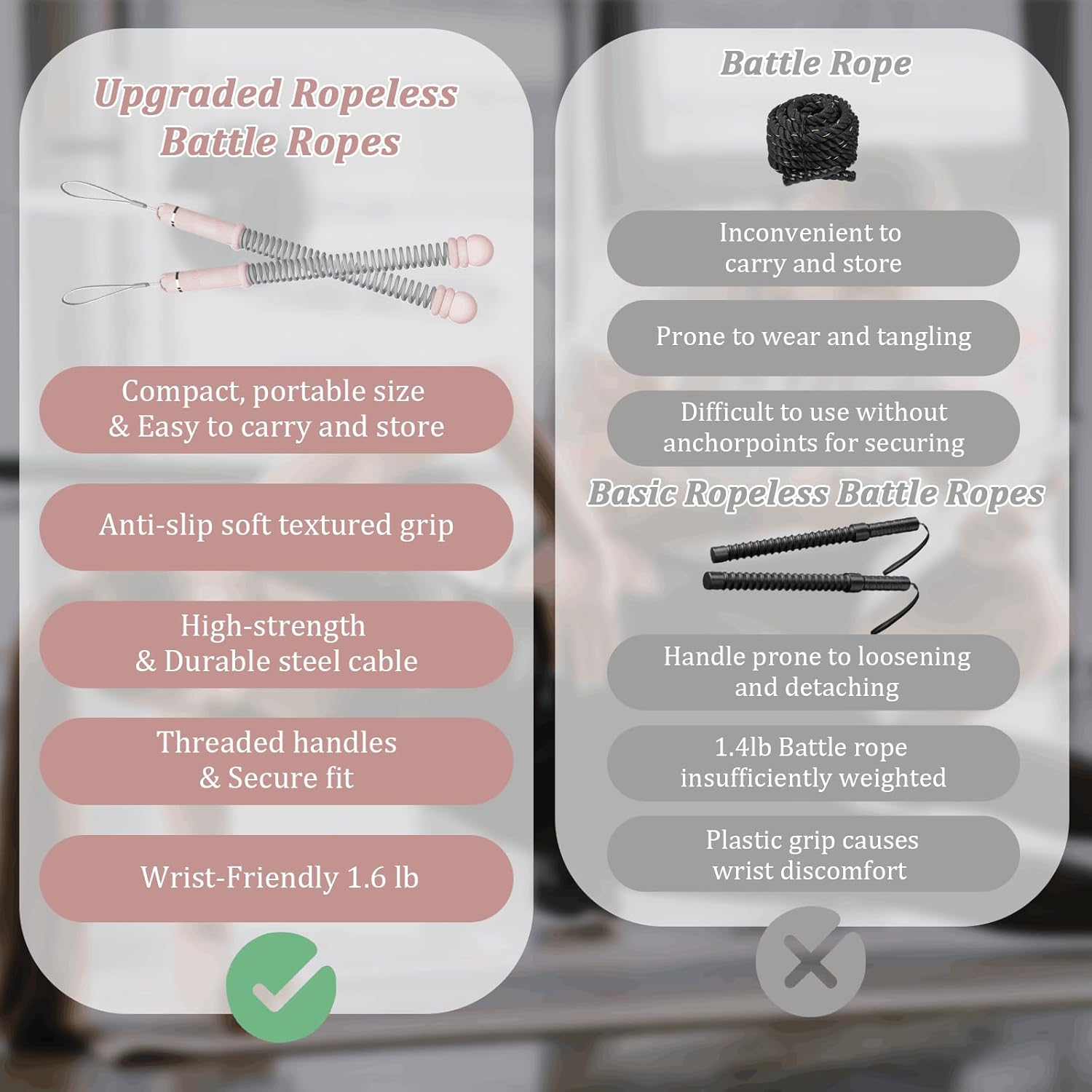 No Rope, No Limits & Full-Physique HIIT : Get the identical calorie-blasting, muscle-building movement as conventional battle ropes—with no need a big exercise area. Good for HIIT, cardio, core and shoulder conditioning.