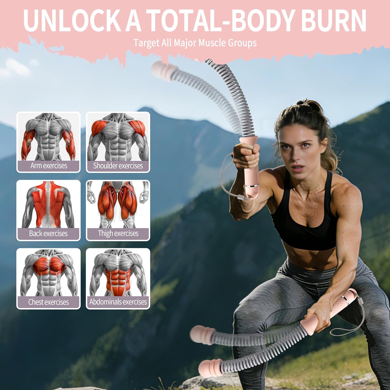 【CORDLESS BATTLE ROPES WITH CUSTOM RESISTANCE】These cordless battle ropes with resistance springs allow you to management exercise depth with ease—slide the burden rings nearer to the deal with for lighter periods or place them greater for max resistance. Ideally suited for women and men, these weighted ropeless battle ropes develop together with your health degree and coaching progress.
