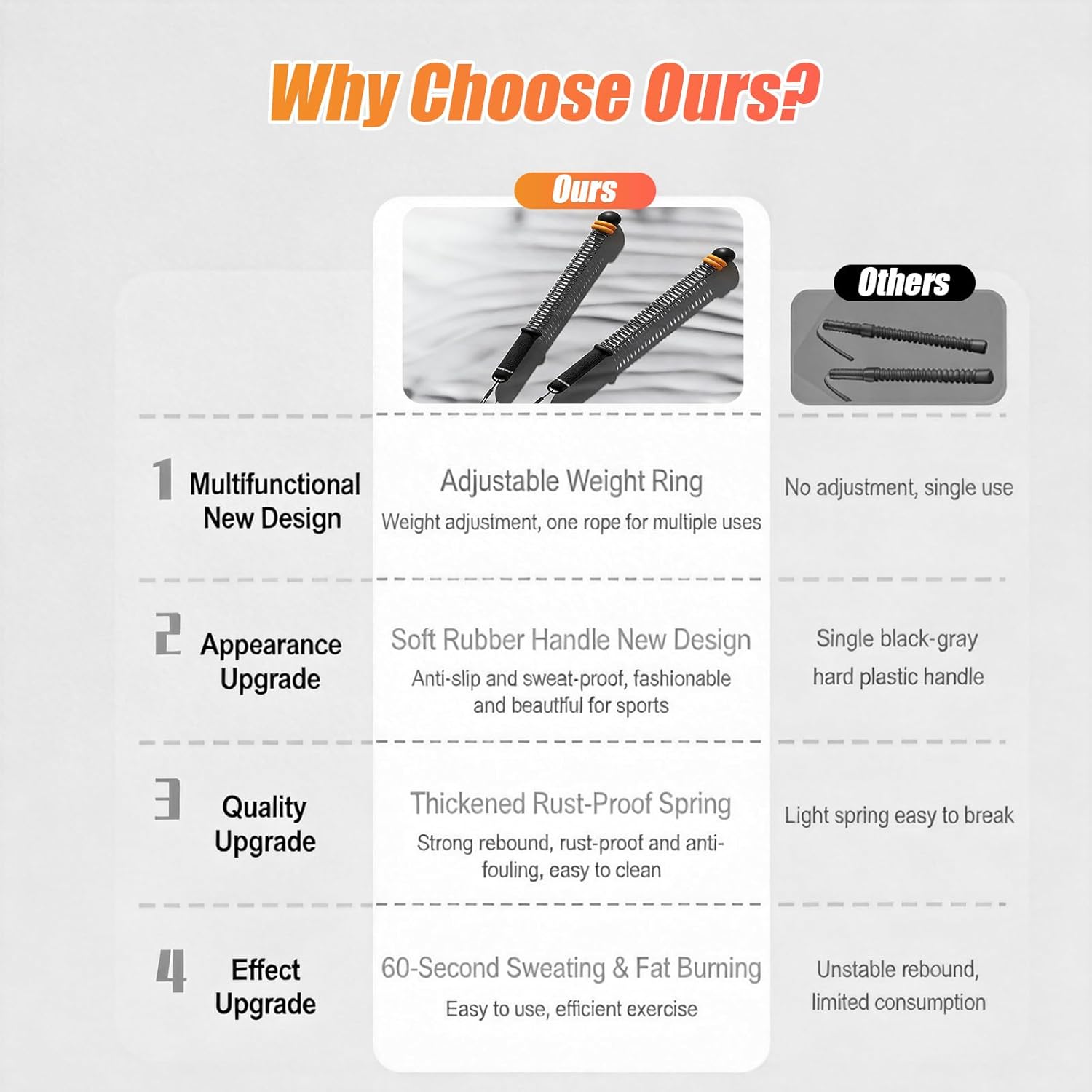 【Sturdy and Security】 Designed to be sturdy with excessive elastic springs and rust resistant coatings, this weighted ropeless battle rope presents highly effective rebound and sturdiness. The cordless coaching ropeless ropes health includes a safe embedded deal with, with elastic to stop slipping, making certain secure and dependable coaching.