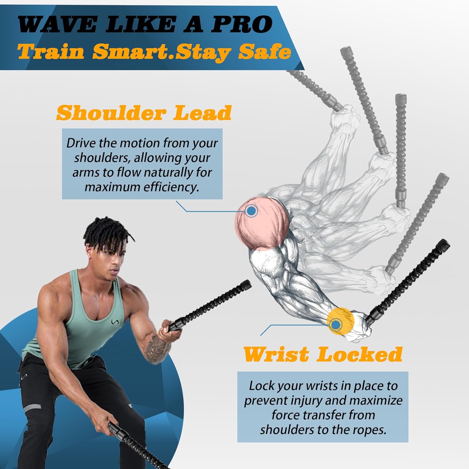 [Gym Bag Ready]: Toss our cordless battle rope into your bag—20.47 in size matches wherever. Consists of sweat‑absorbent wristbands to guard your wrists. Practice anytime, wherever with this versatile quick battle rope