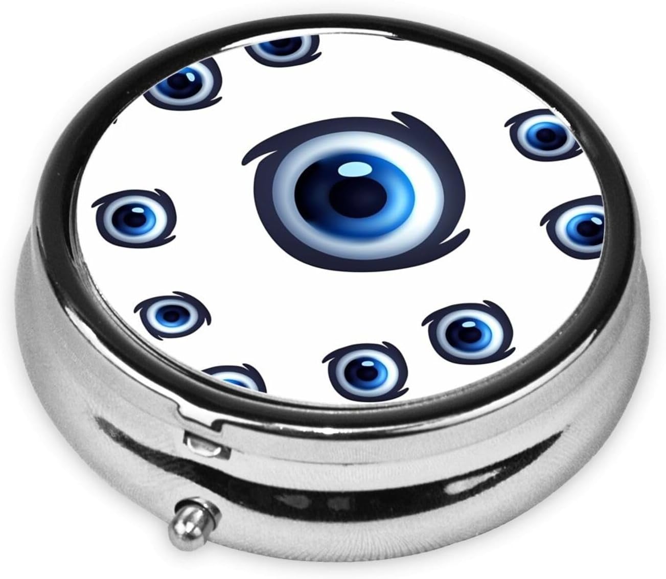 Capsule Case Evil eyes Capsule Field 3 Compartment Small Capsule Case for Purse or Pocket Small Roud Capsule Field or Nutritional vitamins, Fish Oil, Dietary supplements, Capsule Containe Journey Presents