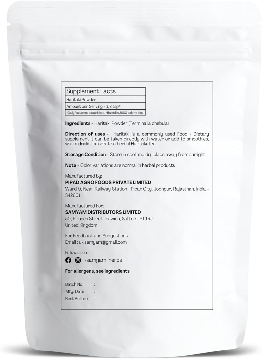 Merchandise mannequin quantity : S Haritaki Powder 200g