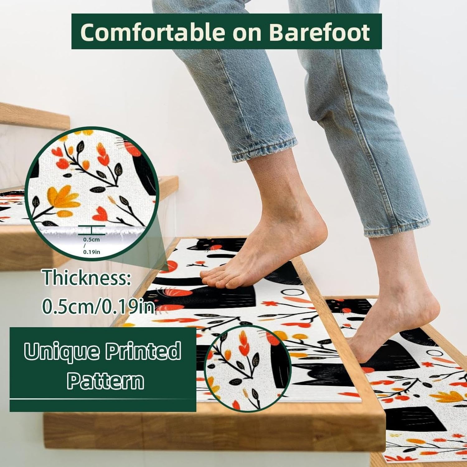 ・Vacation Design: Stair carpet treads are designed particularly for Christmas,Halloween, Thanksgiving Day options traditional pageant components and vivid printing types,creating lovely and gorgeous visible results for you. This vacation themed stair treads can simply enable you to add a powerful festive environment, bringing charming and beautiful vacation decorations.