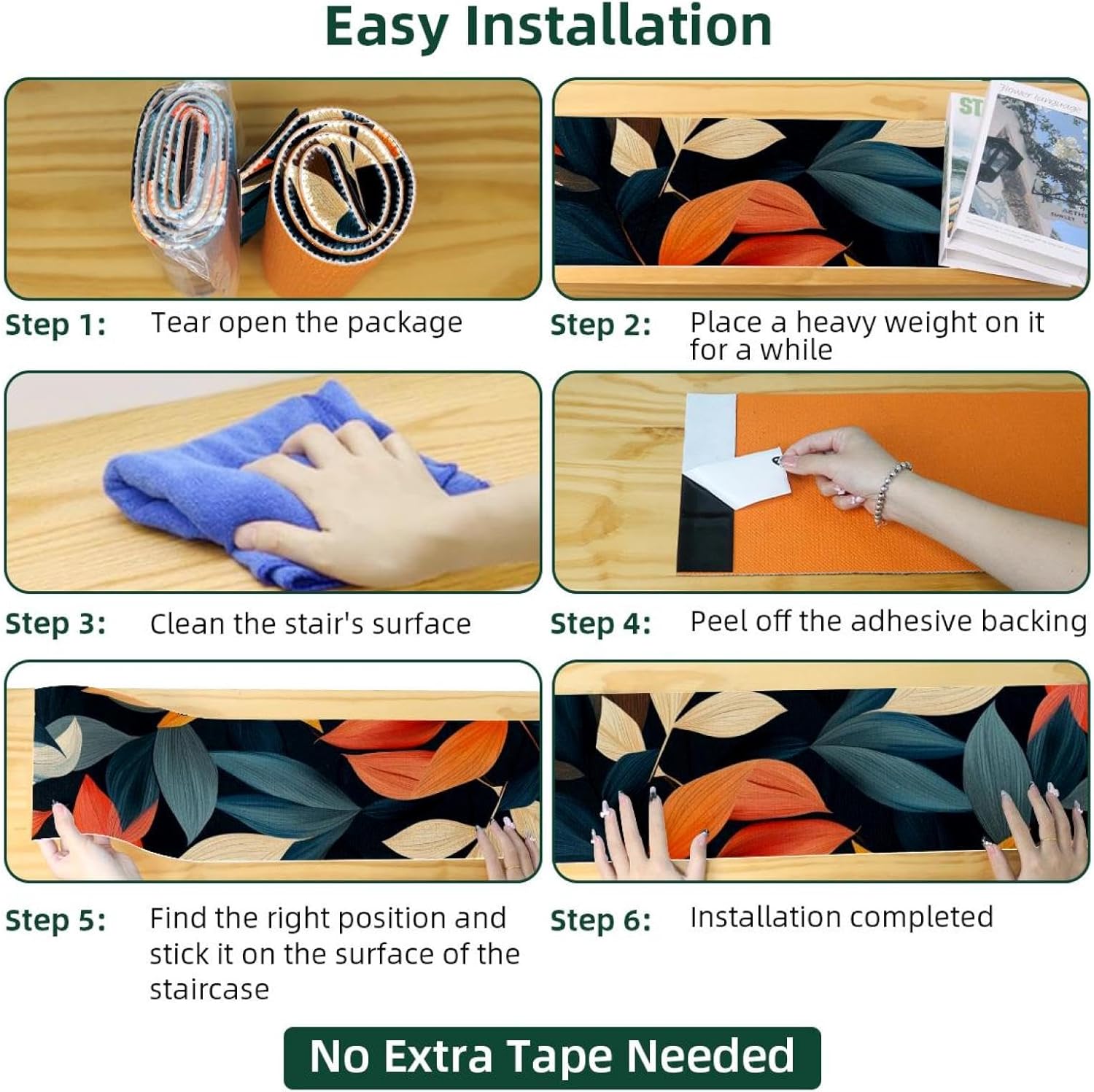Materials: Our stair treads are designed with delicate and good materials,a self-adhesive backing, not straightforward to slide and guaranteeing your security. The polyester floor absorbs water, stopping stains on the ground. The TPE again is non-slip and waterproof, stopping injury to the steps. The step treads are constructed from 3 layers. These 3 layers completely complement one another, offering added stability.