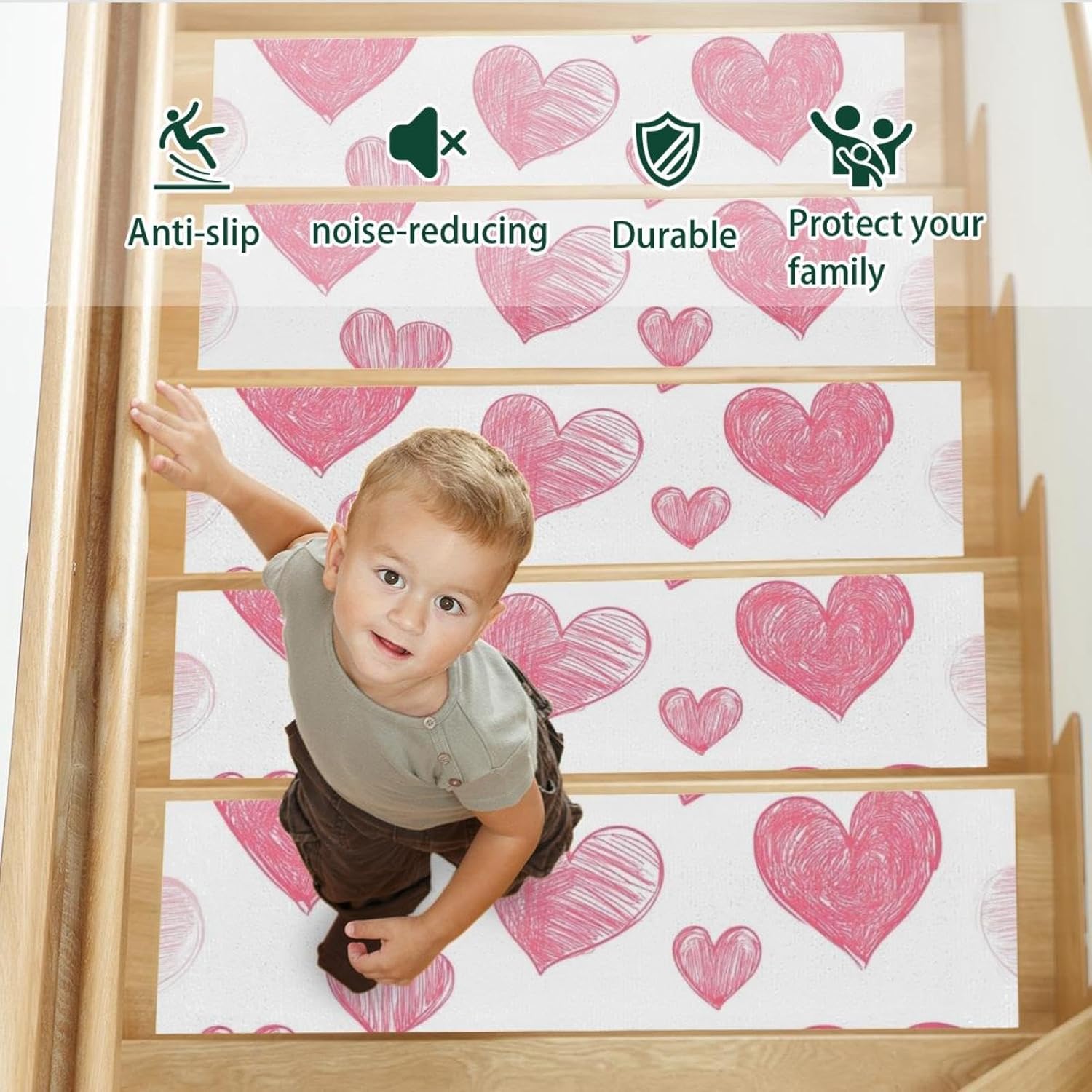 Materials: Our stair treads are designed with mushy and good materials,a self-adhesive backing, not straightforward to slide and making certain your security. The polyester floor absorbs water, stopping stains on the ground. The TPE again is non-slip and waterproof, stopping injury to the steps. The step treads are constructed from 3 layers. These 3 layers completely complement one another, offering added stability.