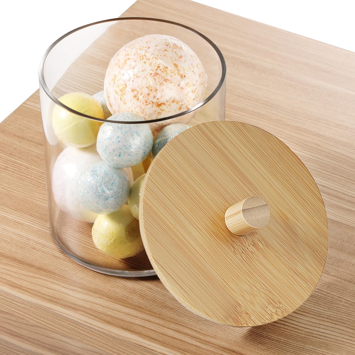 The jars characteristic a minimalist cylinder design with clean edges and snug-fitting bamboo lids. The clear acrylic physique makes it simple to see contents at a look whereas including a clear, fashionable look to your property.