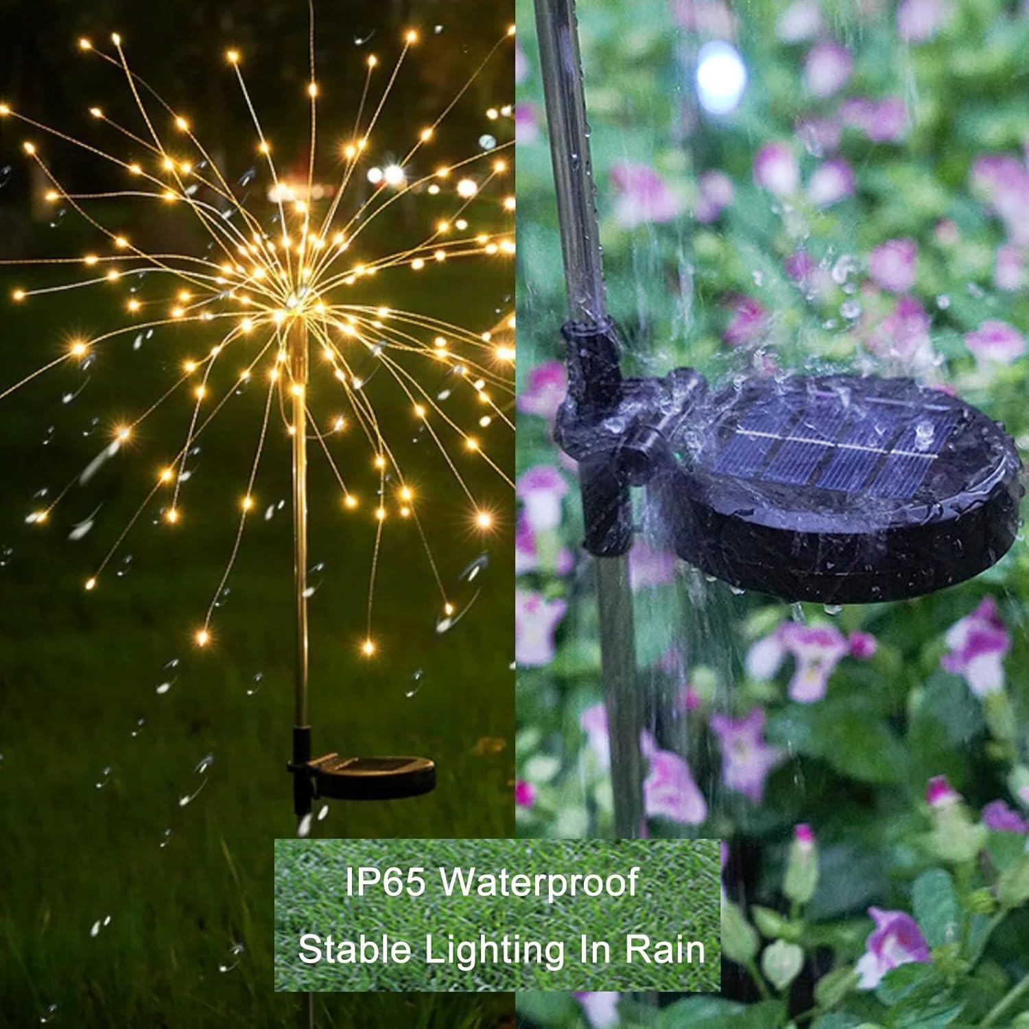 【Photo voltaic Powered and Lengthy Working Time】: These fireworks lamps are powered by photo voltaic power, offering lasting and energy-saving lighting. These lamps are outfitted with 150 sturdy low-heat LED lamps and photo voltaic panels, and built-in 1.2V/600mAh high-capacity AA batteries. Normal sunshine fees for 6-8 hours through the day and works for 8-10 hours at night time after being totally charged.
