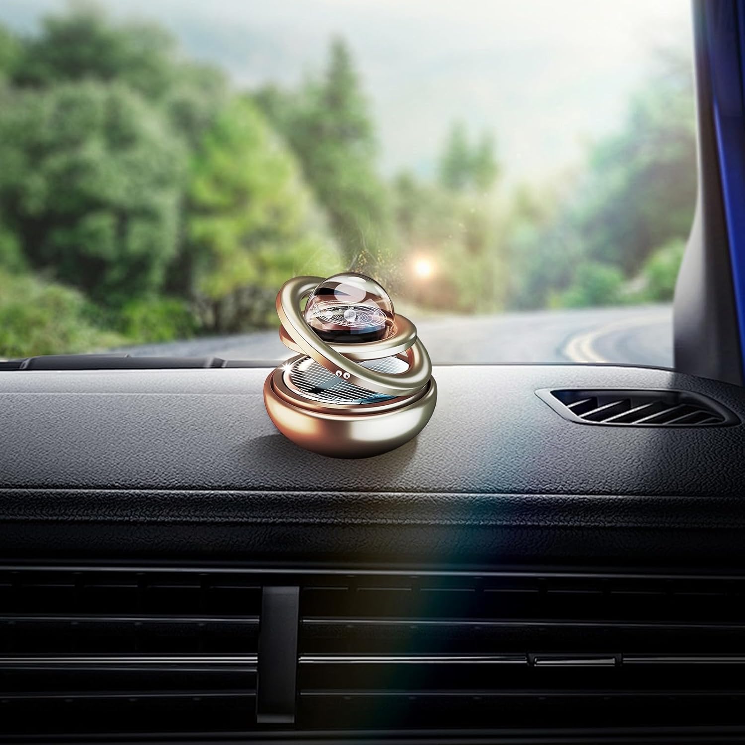 The mesmerizing crystal ball rotates elegantly round twin rings when uncovered to direct daylight, making a charming interstellar show in your dashboard.