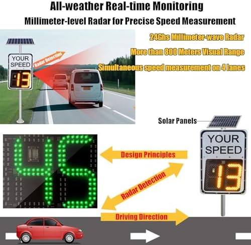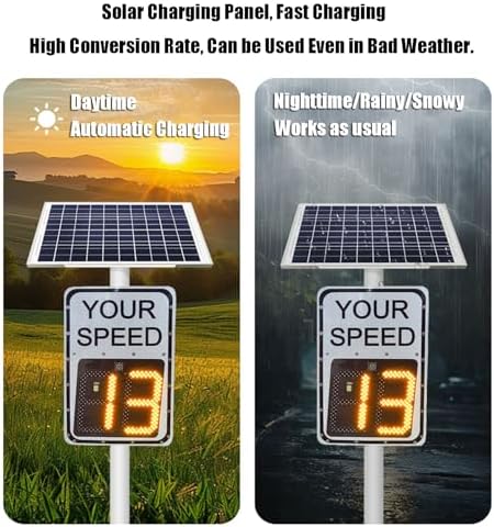 【Sensible Eco-Pleasant Operation】This Photo voltaic-Powered Velocity Monitor operates in all climate circumstances, offering weeks of use on a single cost with out incurring electrical energy prices. That includes adjustable velocity thresholds, it’s ultimate for numerous areas together with personal roads, faculty zones, company parks, and group streets, guaranteeing correct velocity measurement wherever wanted.
