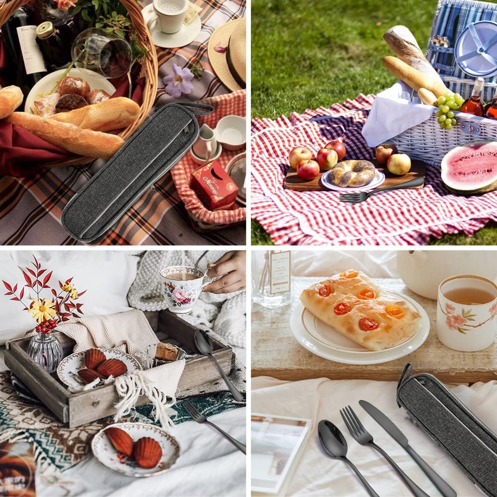 Premium High quality Utensil Set for Tenting- Neglect all these low-cost plastic or flimsy cutlery! Simply belief our sturdy and premium high quality chrome steel journey utensil set. On your finest hand feeling , we thickened the supplies on transportable utensil set for beautiful craft casting. And this rustproof and long-lasting reusable utensils with case permits you to get pleasure from each meal wherever indoor or out of doors throughout your journey.