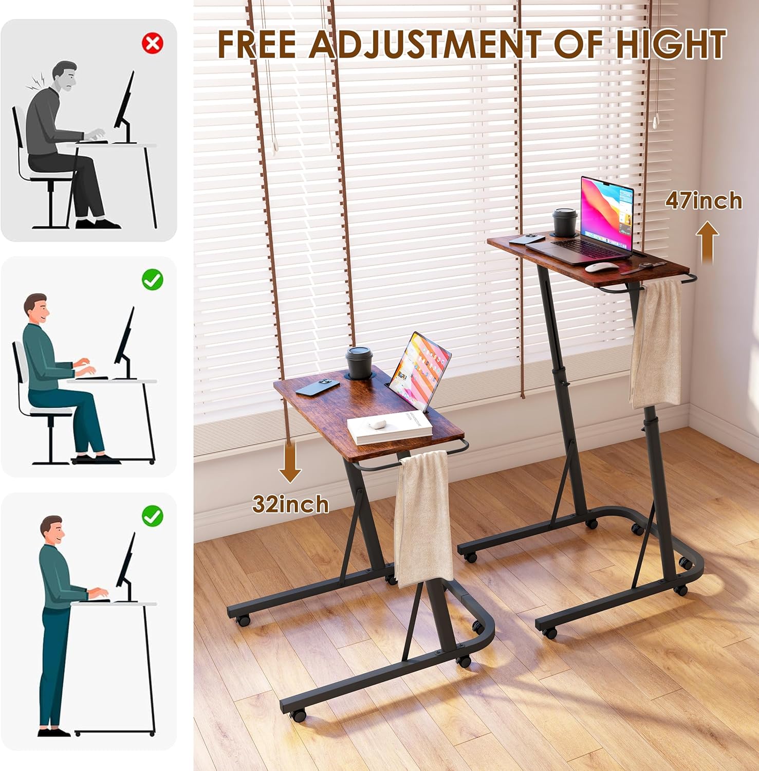 【Ergonomics Rolling Desk】 Adjustable top (32″-47″) for sitting or standing. Ergonomically designed to enhance posture and cut back again/neck pressure for a more healthy, extra comfy workday.