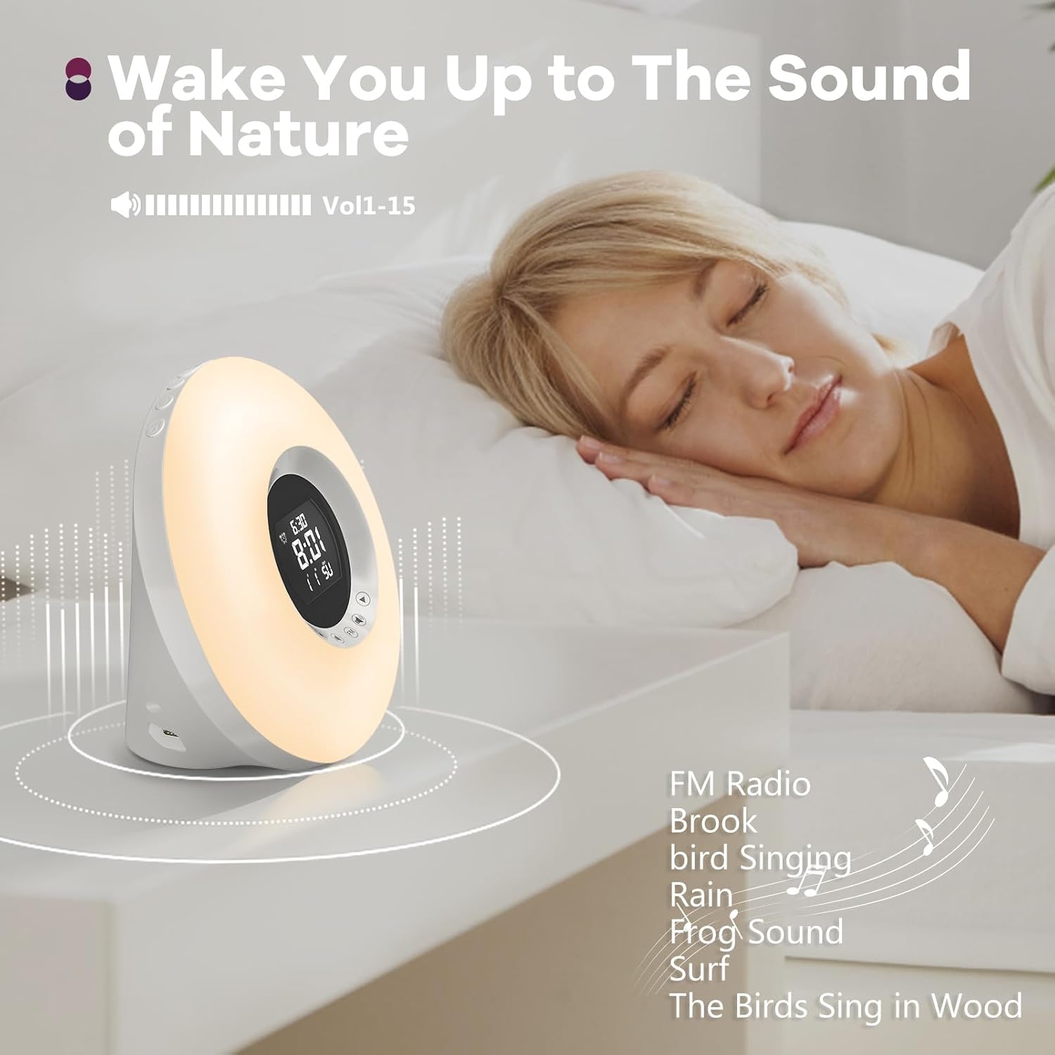 【Wake Up Mild with Dawn Simulation】 Wake Up Naturally with Dawn Simulation: This digital alarm clock includes a extra sensible dawn simulation design and quite a lot of stunning pure sounds to select from, with 10min dawn instances, let nature wake you up gently.