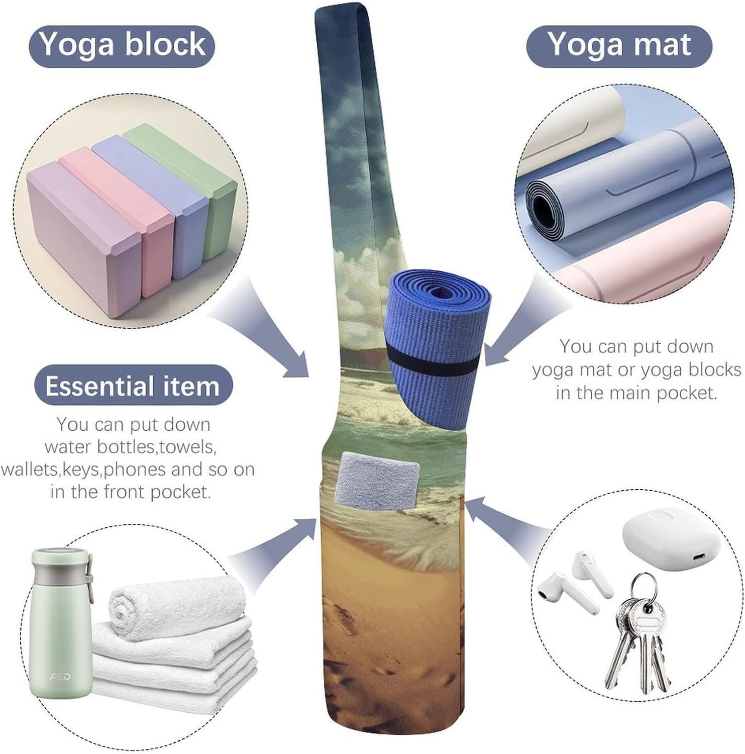 Spacious Design: The big capability of this yoga mat carrying bag accommodates mats of all thicknesses, blocks, towels, and extra, with an inside zipper pocket for valuables like cellphone and keys, and an exterior pocket for water bottles or different yoga gear. Good for these balancing health and every day life