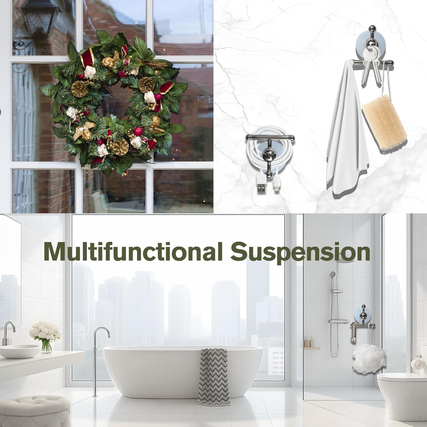 【Suggestions and Notes for Use】 Set up of the T-Bar suction cup hook requires a towel to wipe mud and vapor from the wall. Just for non-porous easy surfaces (keep away from porous/uneven/tough/cracked/textured partitions).