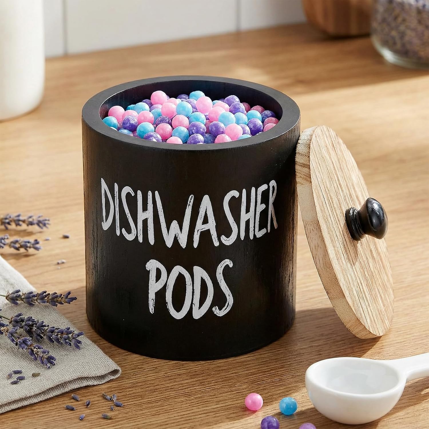 Elegant Dwelling Decor: The beautiful print of the dishwasher pod holder provides a heat farmhouse look to your kitchen. It’s good for protecting your laundry pods organized and saying goodbye to the mess. The wooden dish pod holder isn’t appropriate for laundry. You may wipe it simply with a humid material, then dry it or go away it in a well-ventilated space.