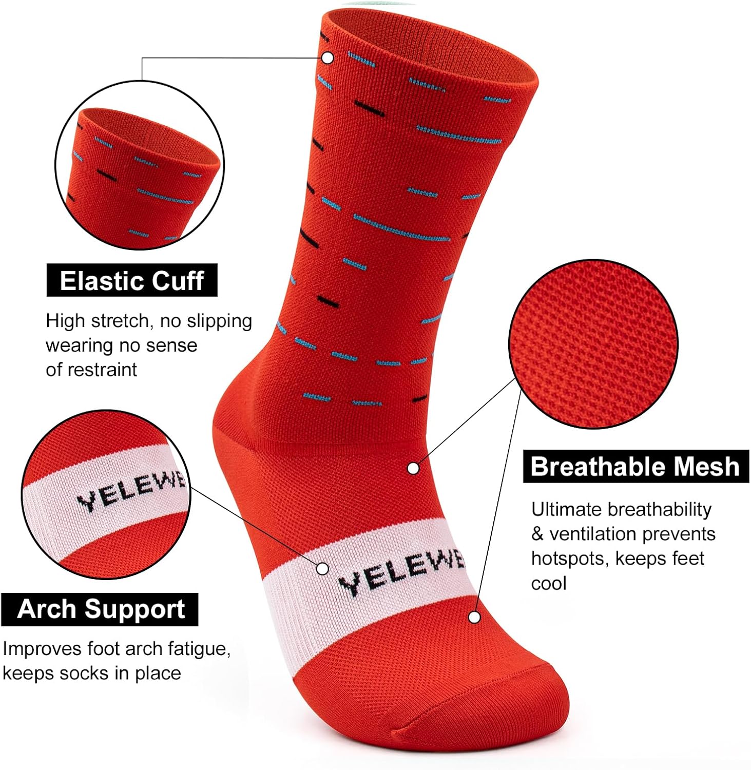 Arch Assist: Compression across the arch helps stabilize motion. It additionally prevents socks from rolling down throughout flooring or weight workouts.
