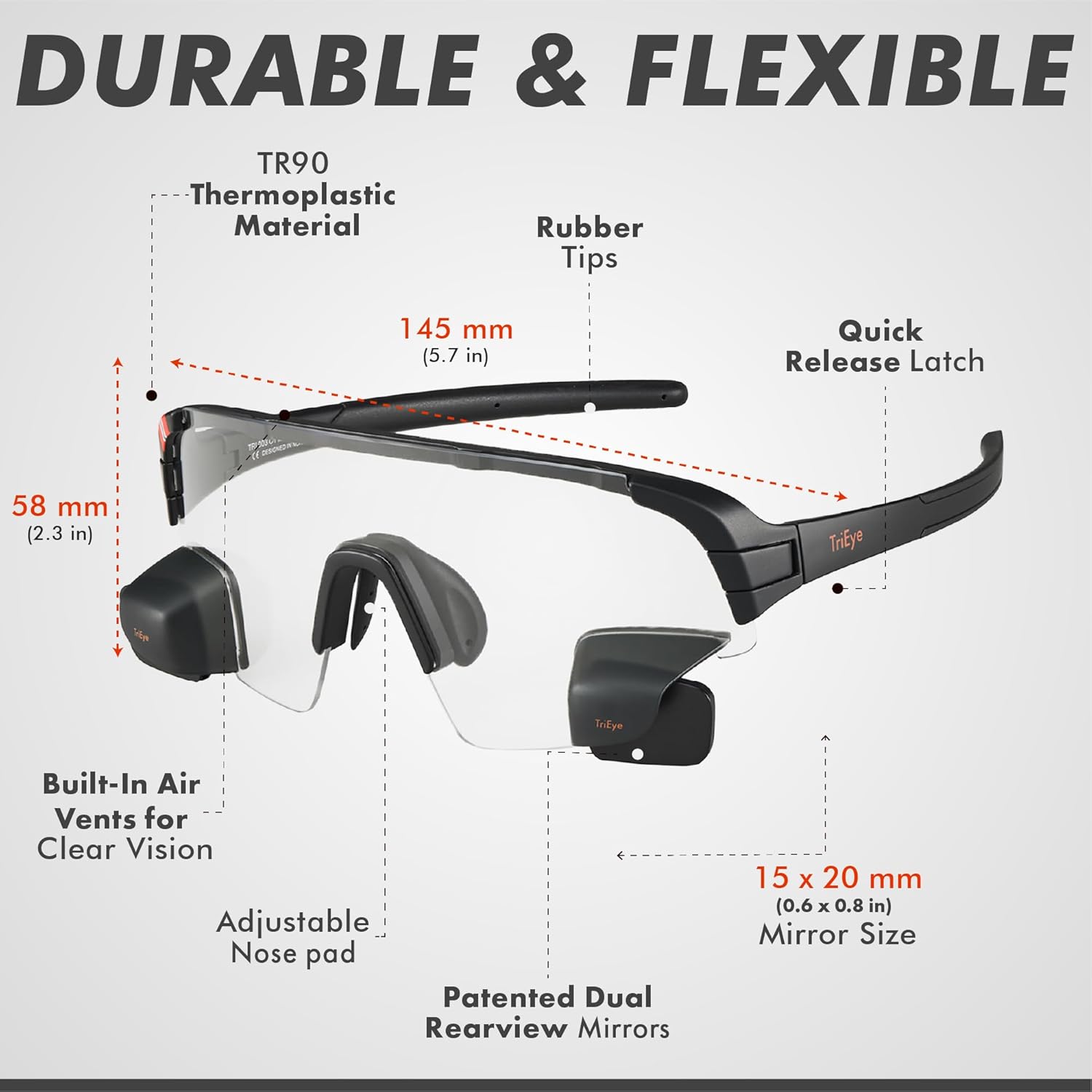 Experience with confidence and see all the pieces that is behind you with TriEye sports activities eyewear. Our revolutionary design options an built-in and adjustable rearview mirror, permitting you to maintain your eyes on the highway forward whereas staying conscious of your environment.