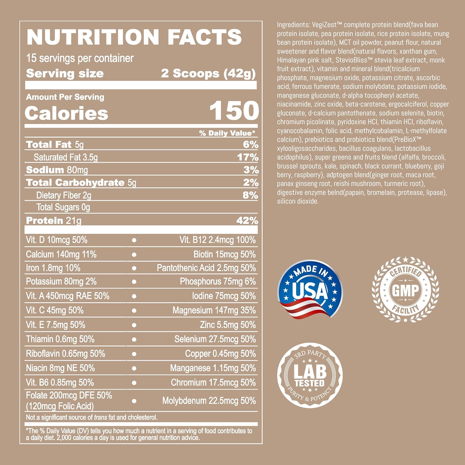 A meal-replacement plant-based full protein shake, expertly crafted from varied crops, affords a well-rounded dietary profile.