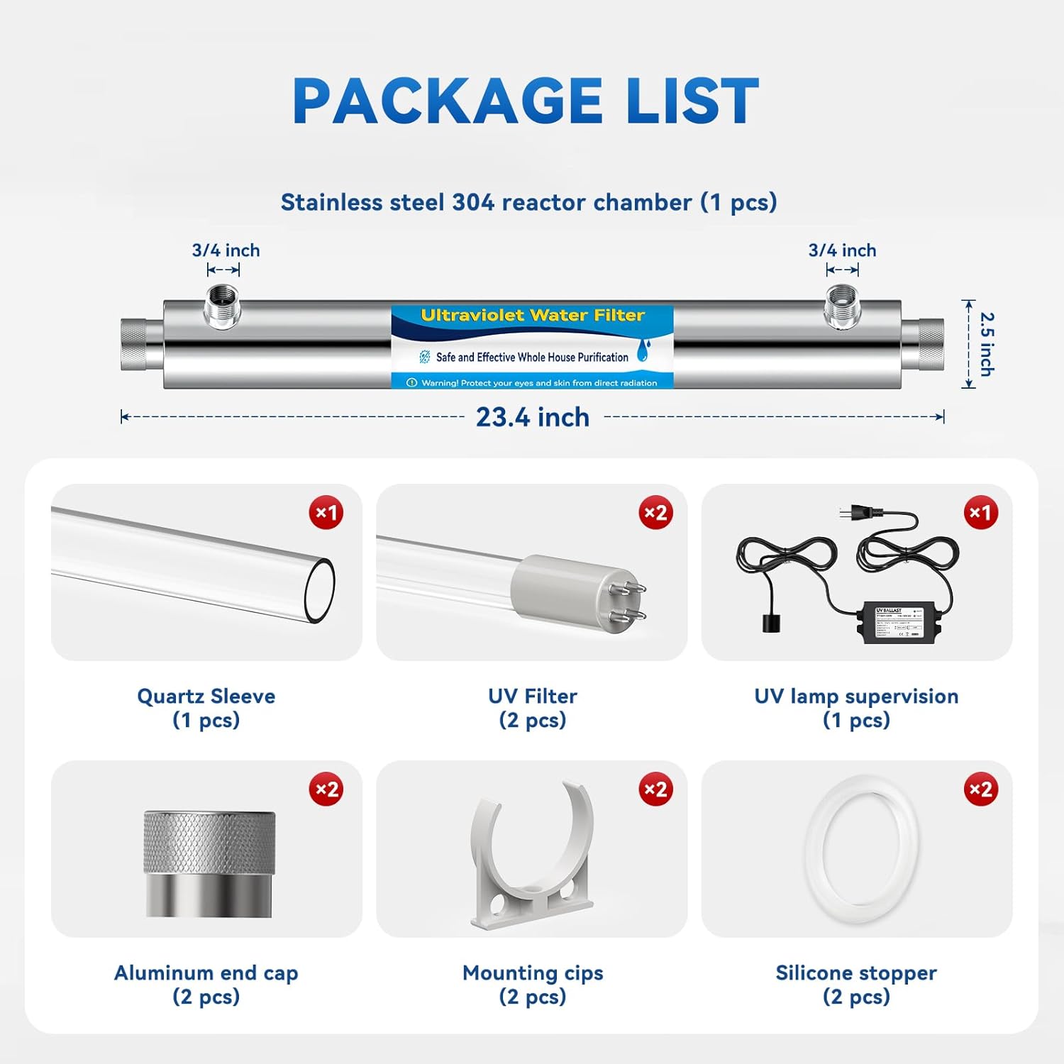 Superior UV Know-how: Our entire home water filter system tilizing cutting-edge expertise, it successfully reduce contaminants, guaranteeing water purity. This UV mild water filter is your key to crystal-clear, contaminant-free water. The 55W UV lamp included with our UV water filter is the guts of the purification course of, has a lifespan of as much as 1,500 hours, lowering the necessity for frequent replacements