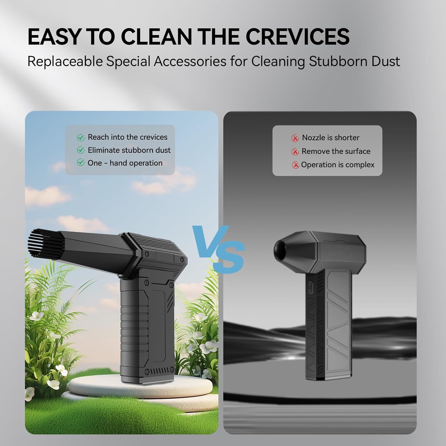 【Successfully Exchange Compressed Air】In comparison with canned air, our cordless air duster is rechargeable and can be utilized repeatedly, and has low powea standby time of greater than 2 years, you should purchase it as soon as and use it endlessly.So the jet blower is an environmentally pleasant, energy-efficient, and cost-saving cleansing product.