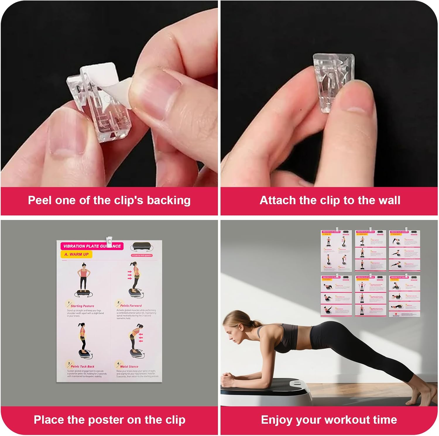 Vibration Plate Train Machine Poster – Upgraded 6 Exercise Steering & 10 Pcs Planner & 10 Pcs Double-sided clips, Complete Entire Physique Wave Vibrating Exercise Chart