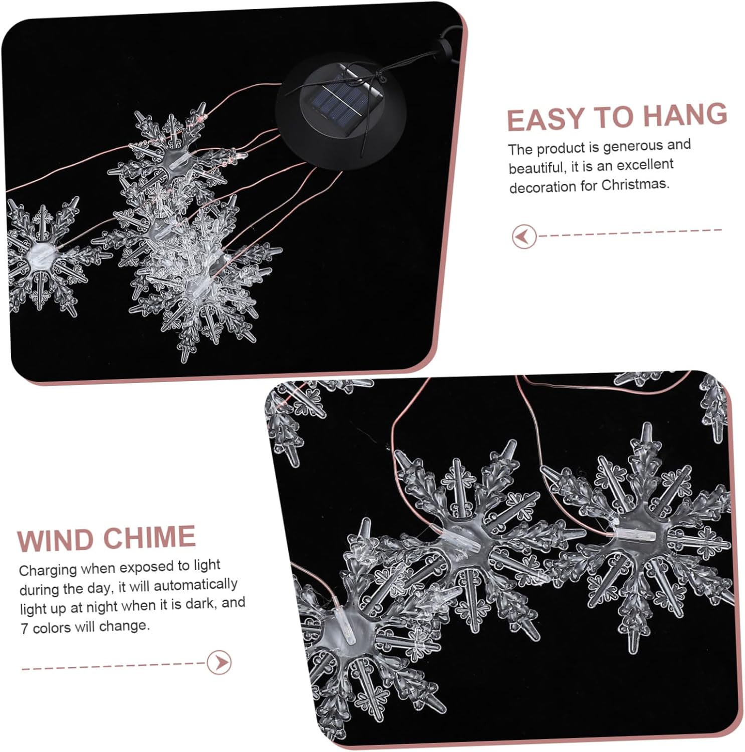 – Photo voltaic lights, no wiring or exterior electrical energy required to be used, handy to on Photo voltaic Wind Chime.