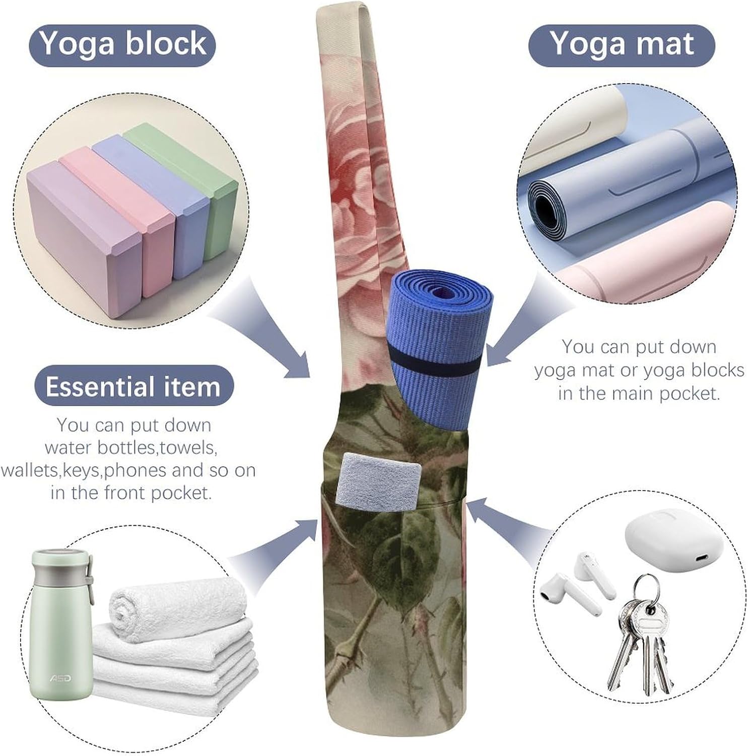 Spacious Design: The big capability of this yoga mat carrying bag accommodates mats of all thicknesses, blocks, towels, and extra, with an inside zipper pocket for valuables like telephone and keys, and an exterior pocket for water bottles or different yoga gear. Excellent for these balancing health and every day life
