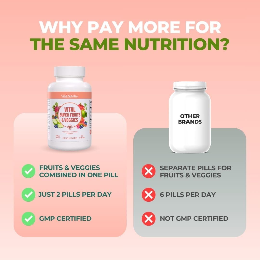 Be the first to review “Vital Super Fruits & Veggies – Daily Superfood Capsules for Adults – Fruit and Veggies Supplement to Boost Immunity & Energy – 2-in-1 Formula for Overall Wellness – Fruit and Vegetable Capsules”