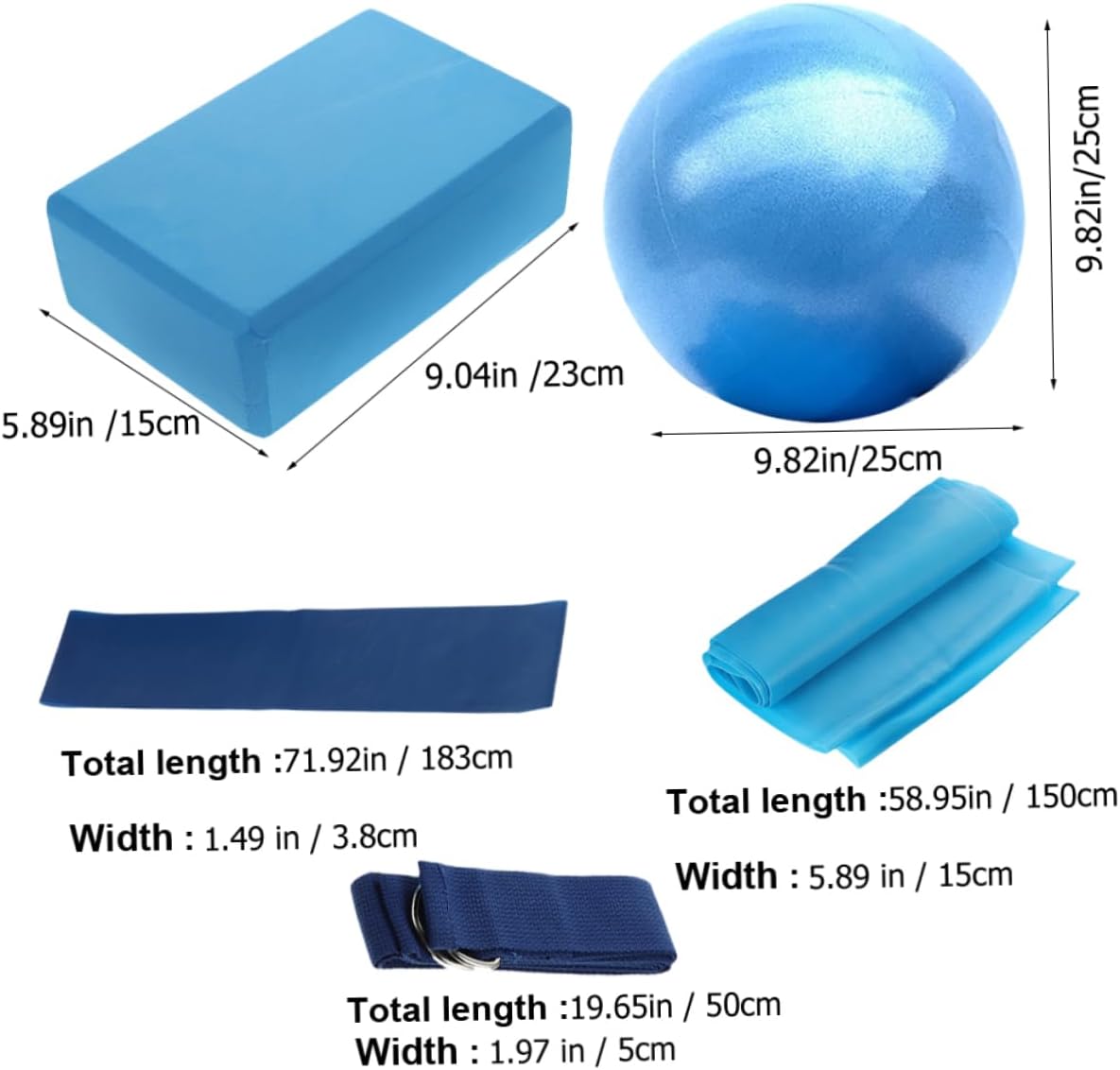 1 x yoga ball 1 x yoga block 1 x resistance belt 1 x resistance band 1 x latex drawcloth