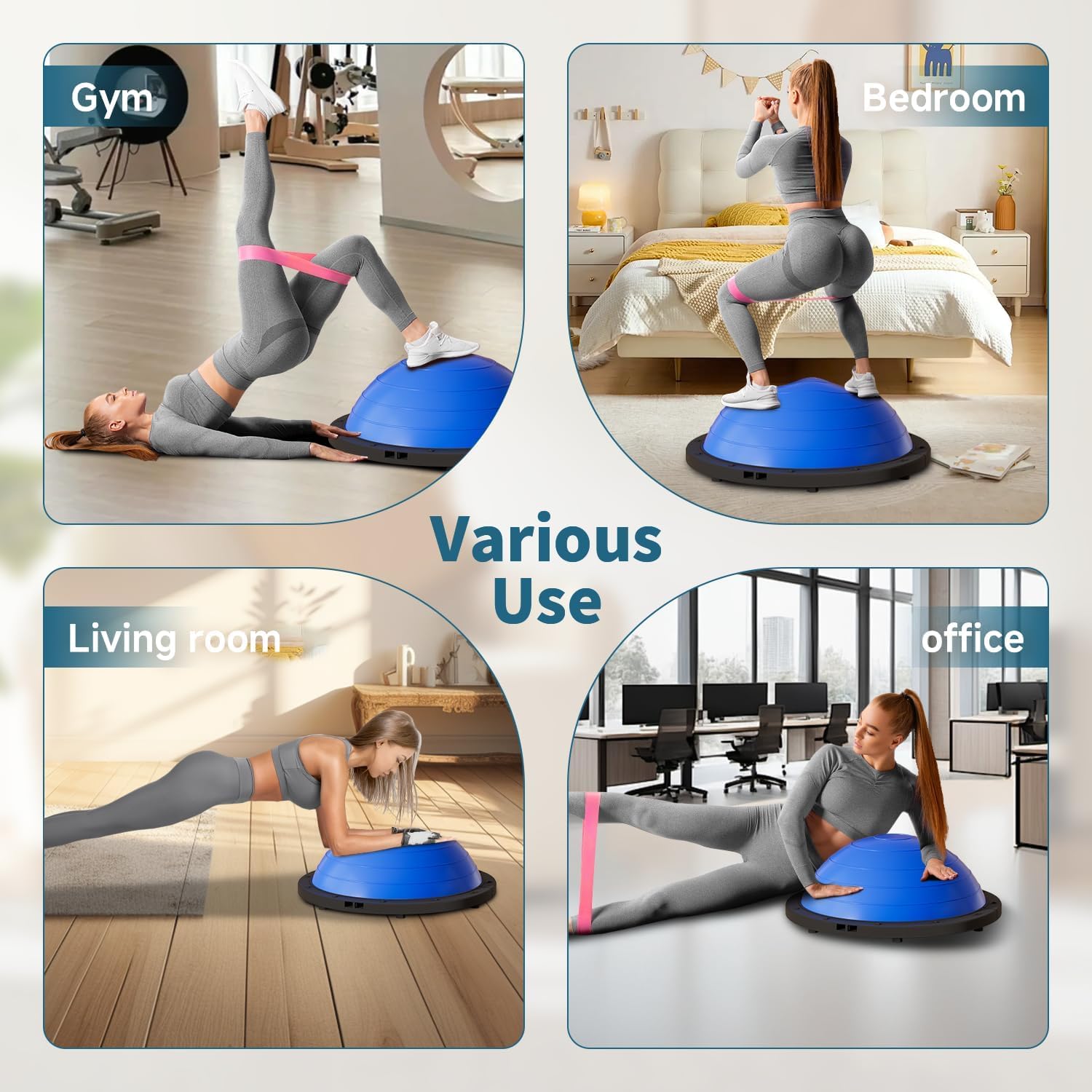 🧘♀️【𝐕𝐞𝐫𝐬𝐚𝐭𝐢𝐥𝐞 𝐓𝐫𝐚𝐢𝐧𝐢𝐧𝐠 𝐌𝐨𝐝𝐞𝐬】The twin-sided design of this stability ball half provides flexibility: Place the flat aspect down for stability drills (squats, lunges) or flip it curve-side down for superior strikes (push-ups, planks, burpees). Ultimate for rehabilitation, bodily remedy, HIIT, Pilates, and all health ranges