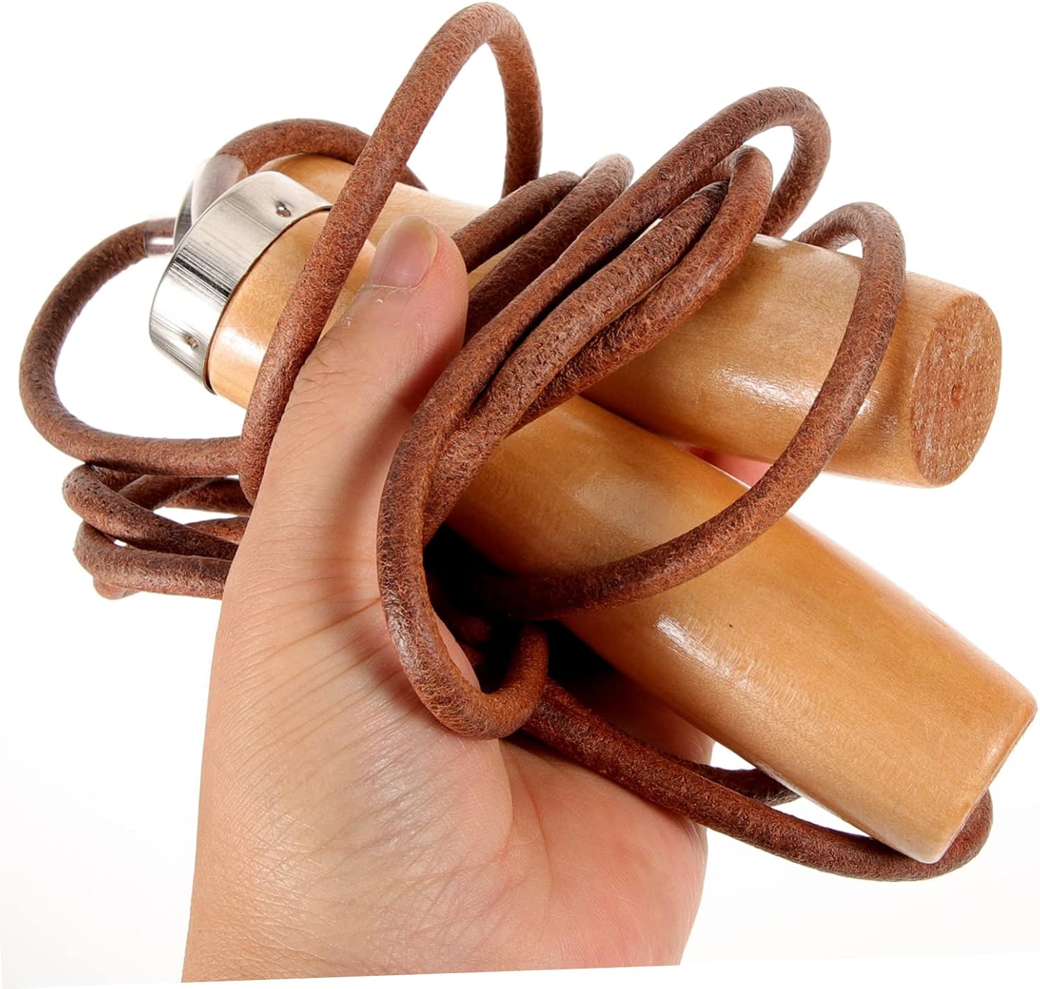 -Advantageous workmanship, product of wooden and cowhide materials, it may be used for a very long time wear-resistant hopping rope.