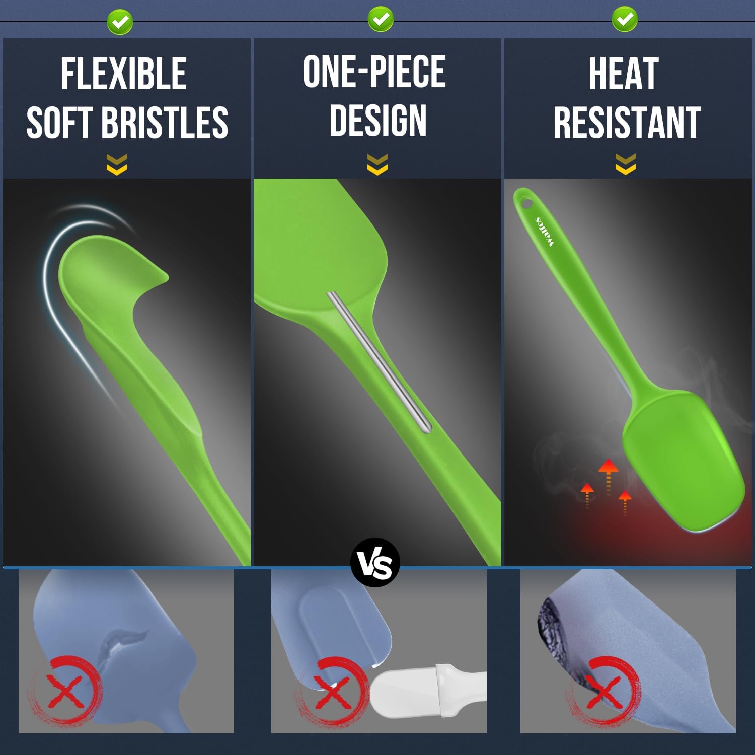 An Inside Stainless Metal Core lechnology:The robust stainless-steel will not break simple like low-cost plastic spatula. WALFOS baking spatula can maintain as much as the demanding use of dwelling cooks, proceed to carry out day after day