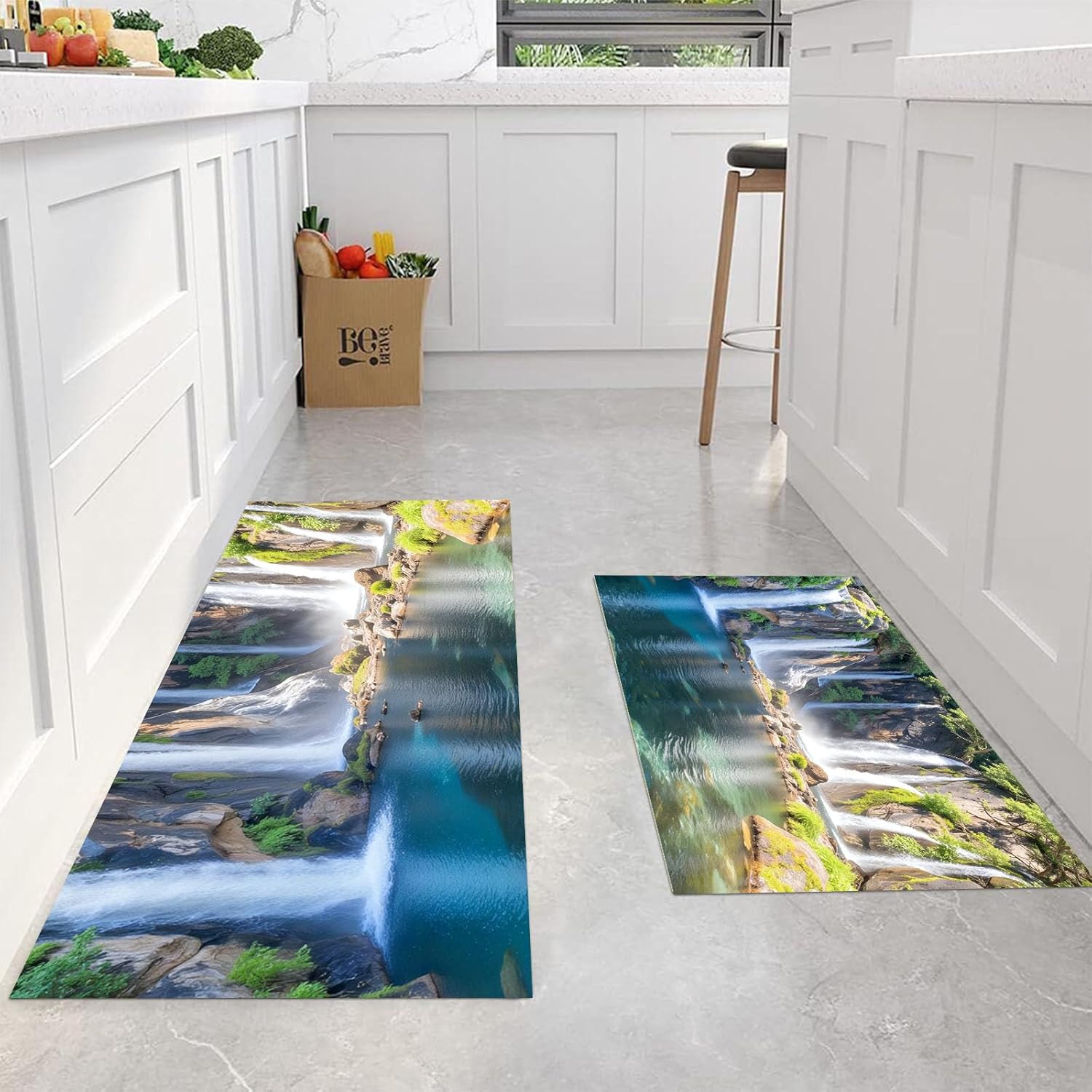 【Set of two Anti-Fatigue Mats】:This set contains two mats excellent for varied kitchen areas just like the sink or cooking zones. The colourful and creative Waterfalls and Lakes design provides a splash of colour to your kitchen, making it look clear and welcoming. These Pure Landscapes mats additionally make nice items for family and friends, providing each fashion and performance