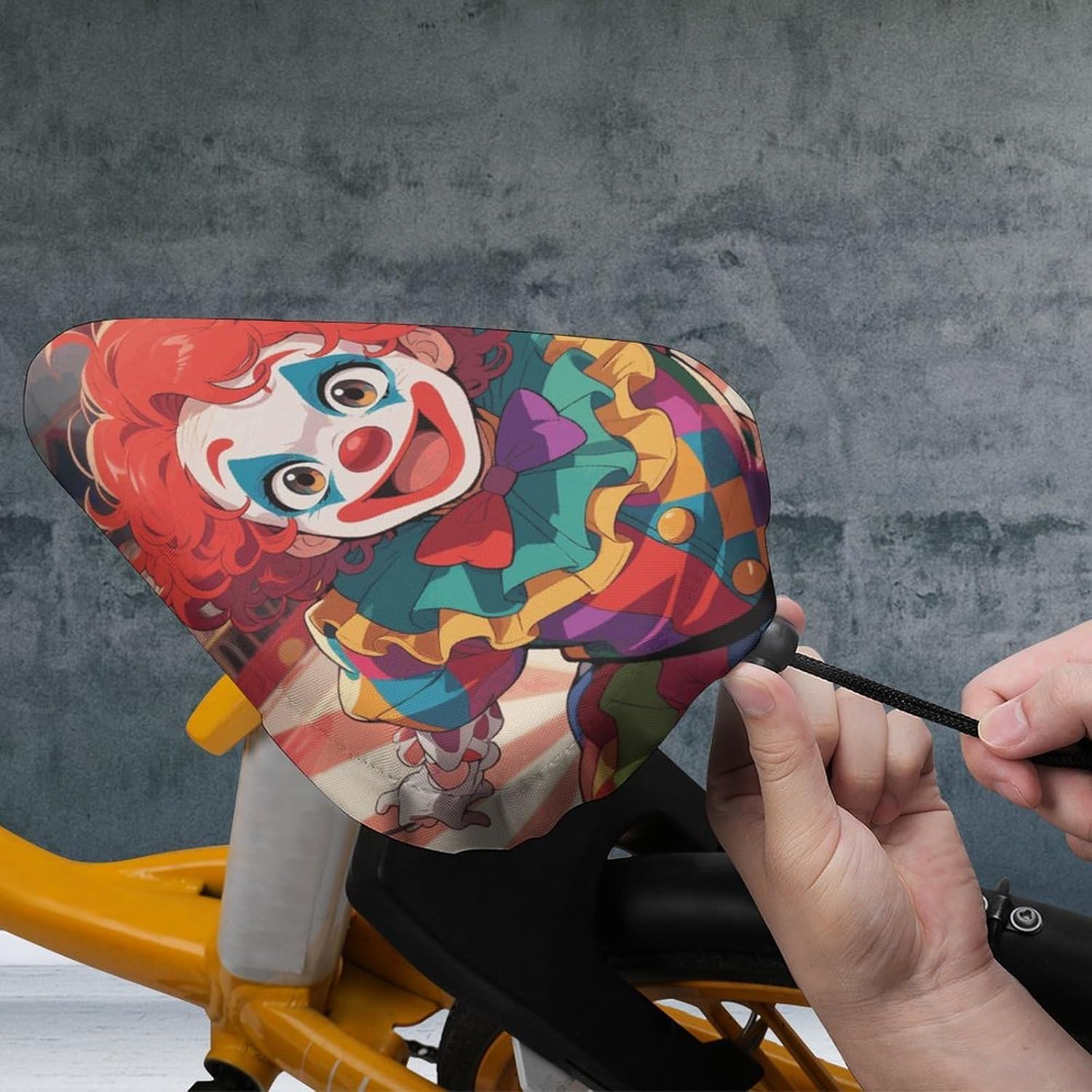 Waterproof Bike Seat Cover with Drawstring -Clown Circus Show Universal Exercise Bike Seat Cushion for Men & Women, Comfortable Non-Slip Bicycle Saddle Cover for Road/Mountain Bikes