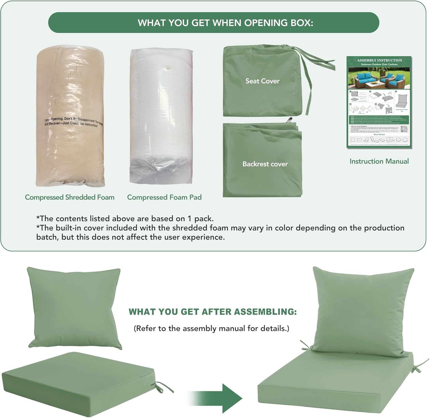 Straightforward Meeting & Care: This out of doors furnishings cushions arrives in a compressed bundle for easy and fast meeting, with out the necessity for any particular instruments. Each seat and again cushions have detachable covers, making day by day cleansing handy. The covers may be machine washed or hand washed; air drying is advisable