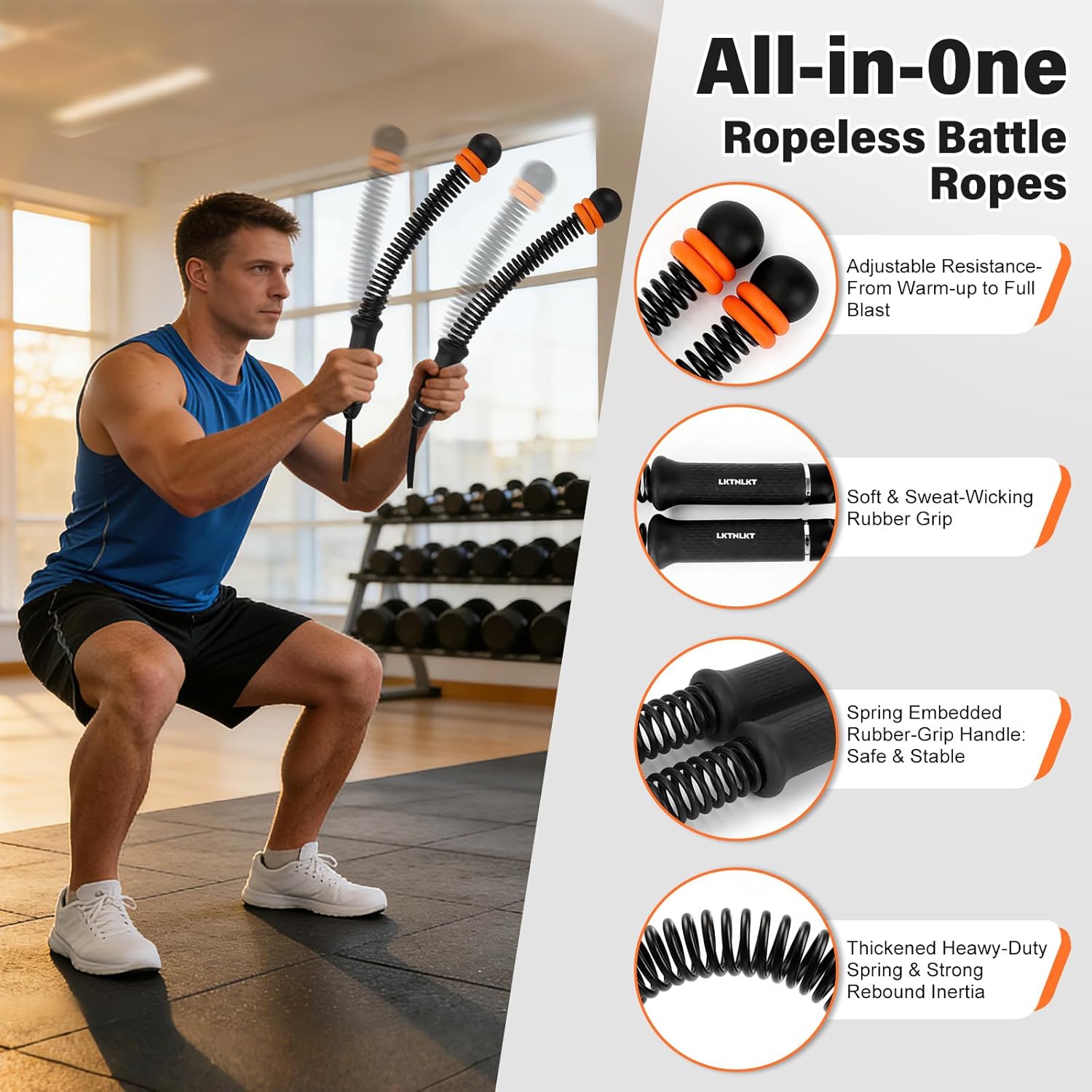 Sturdy, Protected & Moveable Design: Constructed with high-resilience springs and anti-rust coating, these battle ropes ship sturdy rebound and long-lasting sturdiness. The non-slip embedded handles guarantee a safe, snug grip throughout intense coaching. Compact and light-weight, they’re simple to retailer, carry, and use at residence, the fitness center, or whereas touring. Quiet and floor-friendly, they allow you to exercise worry-free with out disturbing others