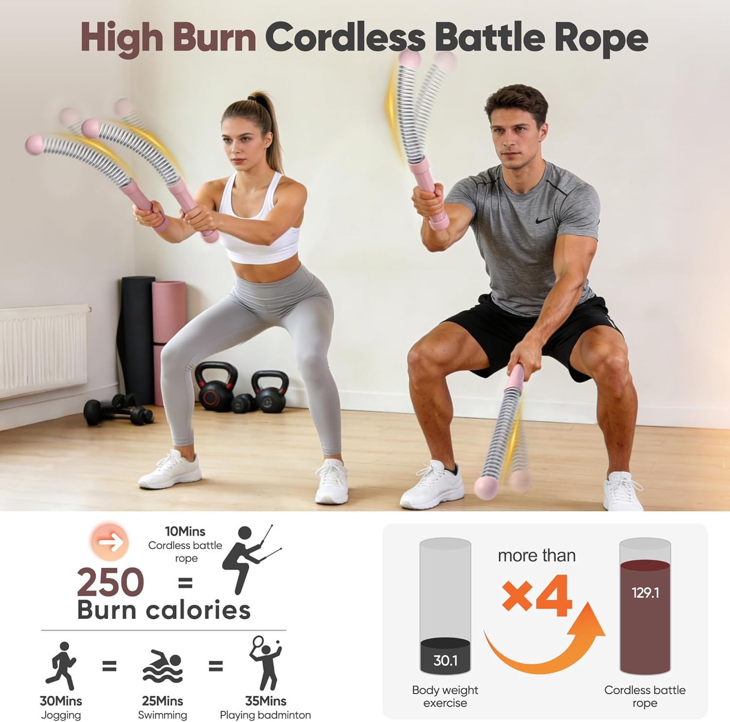 【Full-Physique Energy and Cardio Coaching】:These cordless battle ropes are excellent for HIIT exercises, endurance coaching, and full-body conditioning. Only a brief session with this versatile exercise rope can interact your arms, shoulders, chest, again, and core, delivering the advantages of conventional battle ropes coaching in a compact type.