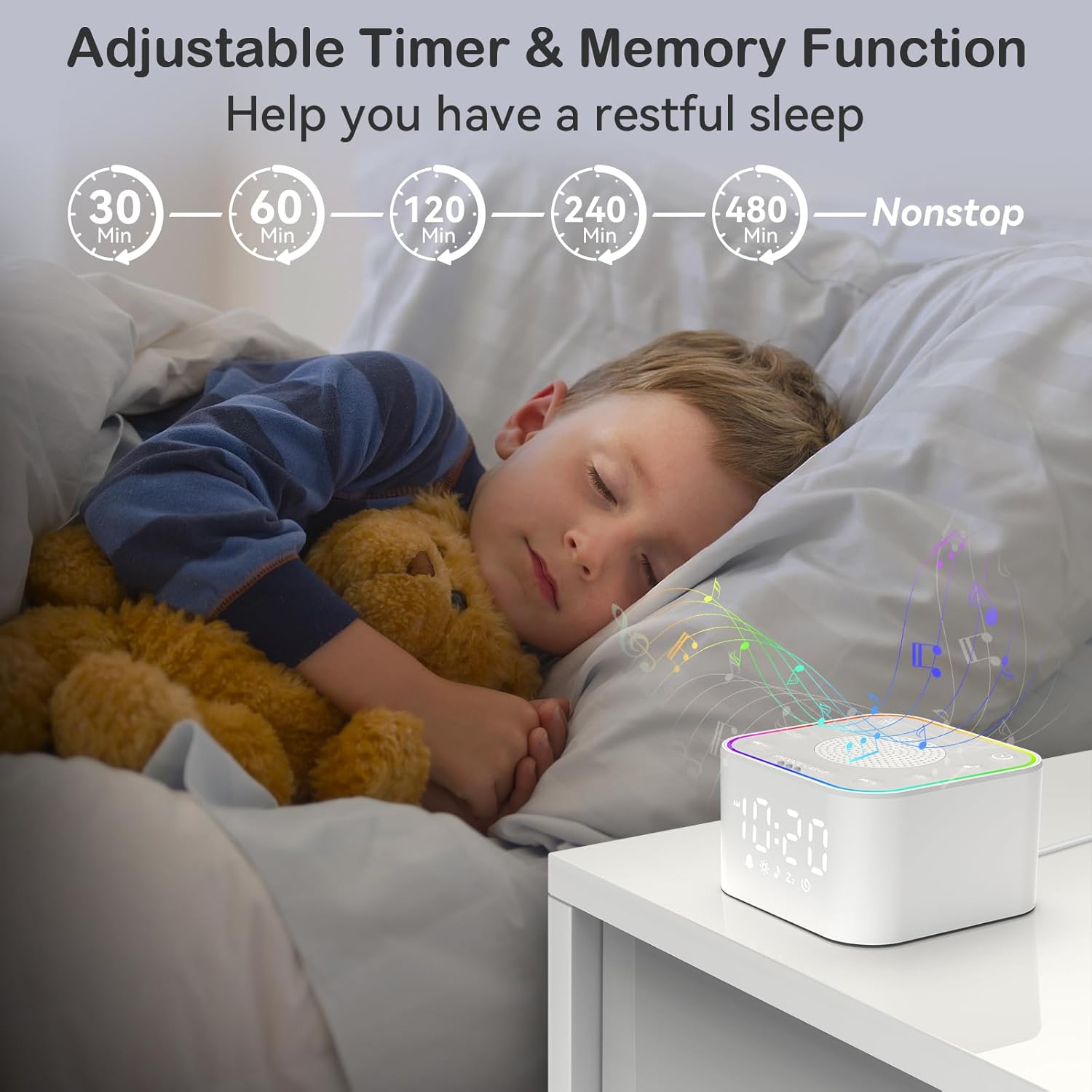 Dimmable Alarm Clock for Bedrooms: Our sleep sound machine for adults features a customizable alarm clock with 7 light wake-up sound choices, making your morning rise peaceable and fewer tense.