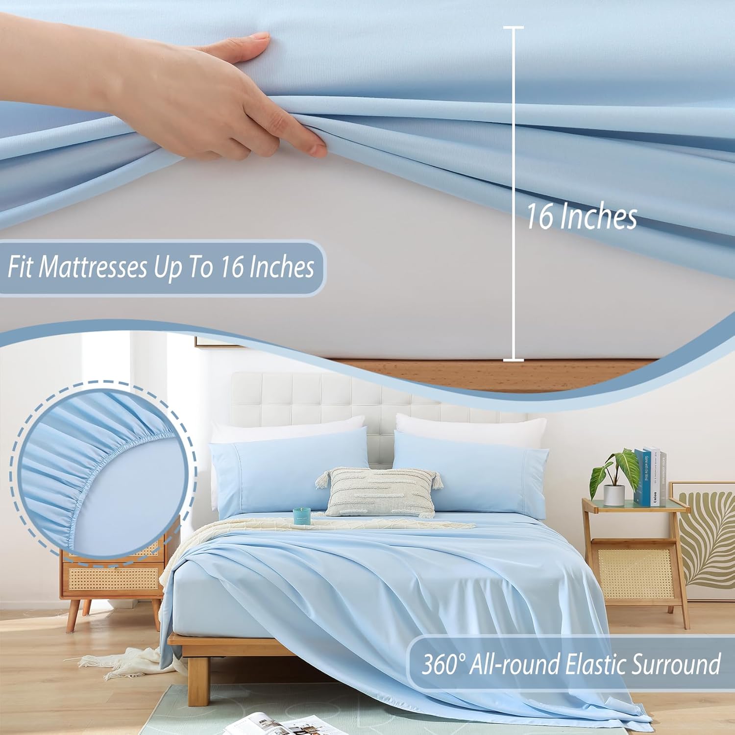 EXTRA DEEP POCKET FITTED SHEET – All-around stretchable elastic deep pocket fitted sheets are designed to suit all mattresses depths 6 to 16 inches deep. Stronger match than silk sheets. Regardless of the way you twist and switch whereas sleeping, the sturdy sheets is not going to slip off.