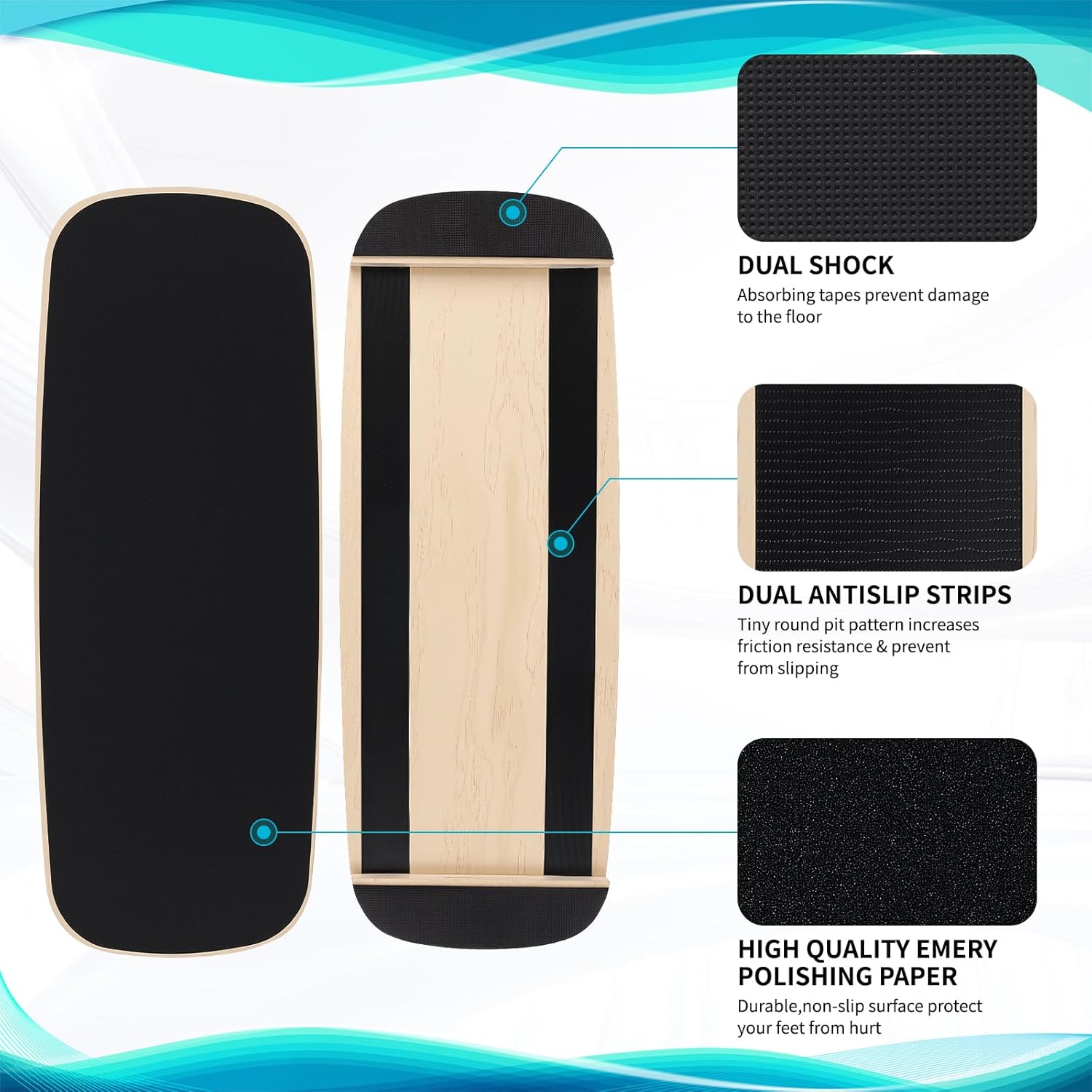 Wood Stability Board for Adults, 350lbs Capability Surf Stability Coach with Anti-Slip Floor