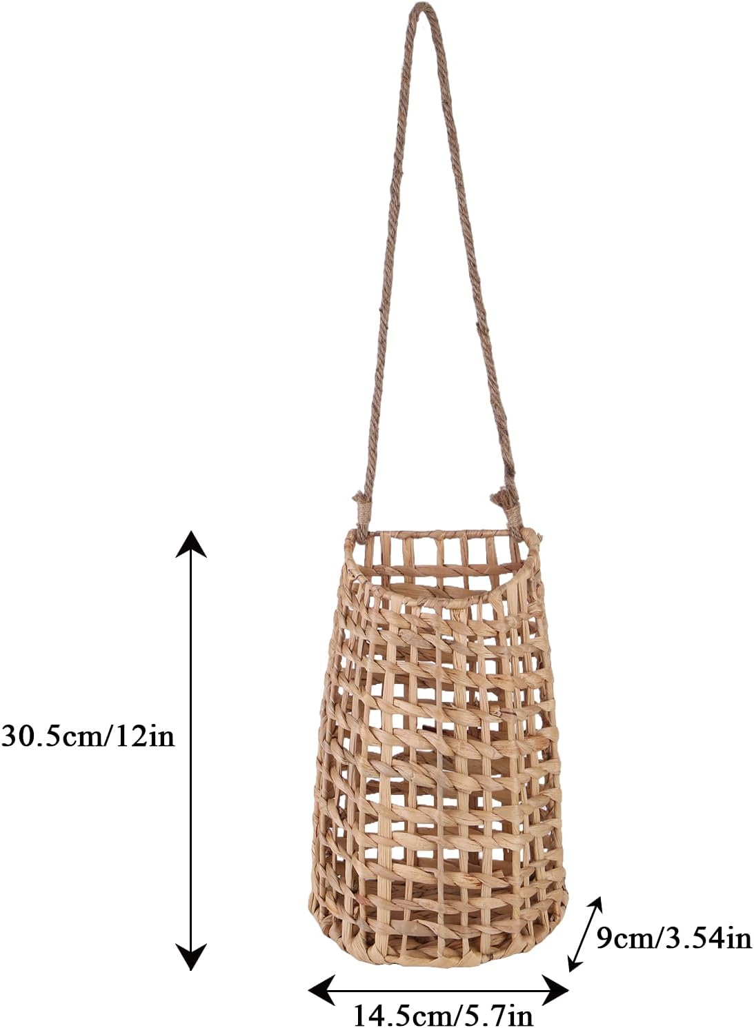【Pure Handwoven Materials】Crafted from 100% pure water hyacinth, this woven hanging basket is handwoven with care and secured with a sturdy hemp rope. Use it as a boho wall basket or hanging wicker basket for door to deliver a heat, natural contact and distinctive texture to your house décor, standing out from normal wicker or plastic baskets.