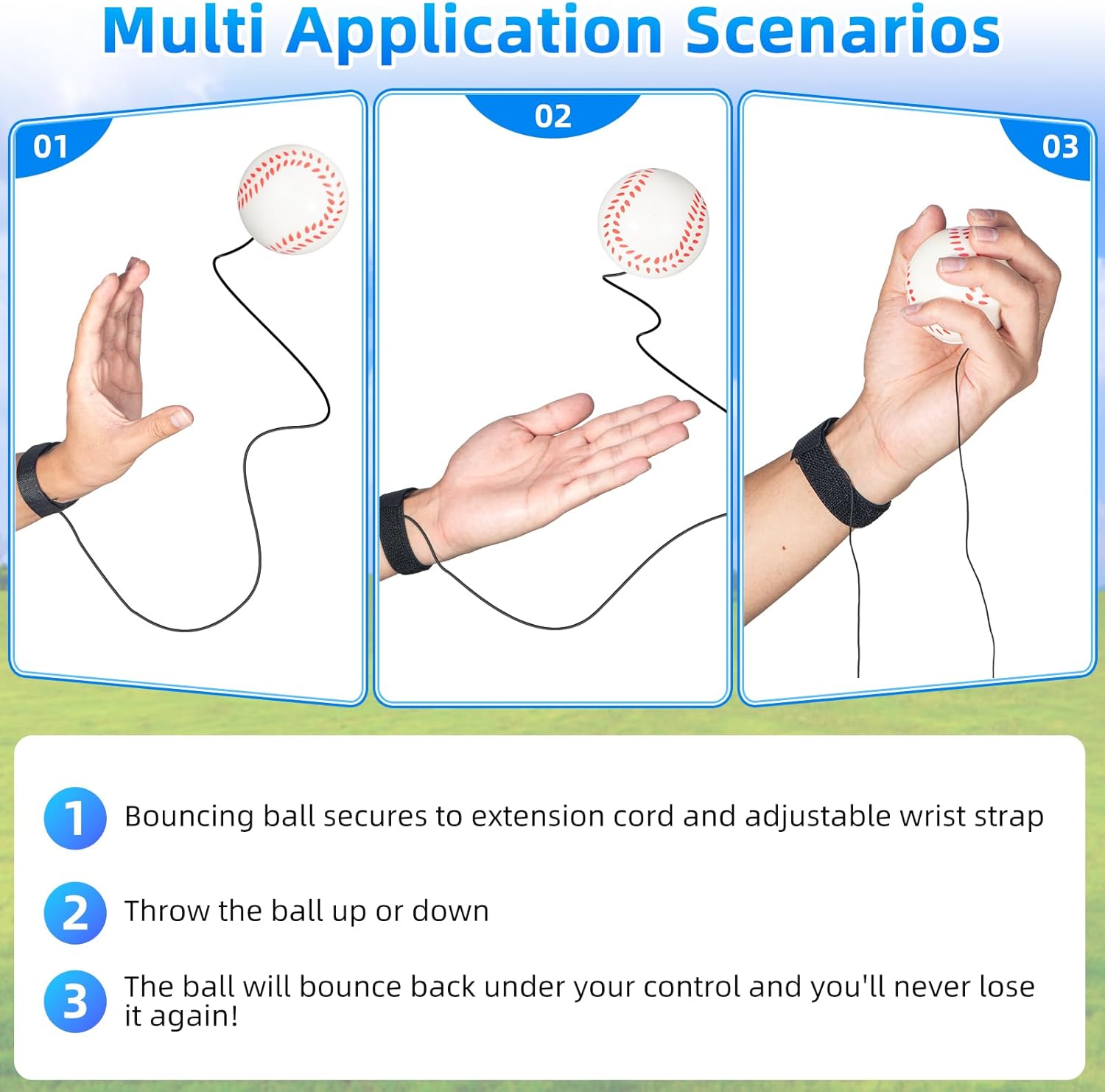 Straightforward to Function: Our wrist balls are designed with self-adhesive wristband cowl and elastic twine, straightforward to function even for inexperienced persons, simply placed on the wristband cowl, modify it to suit your wrist after which modify the size of the elastic twine, when the bouncing ball touches the bottom, it should pop up and allow you to firmly grasp it in your hand