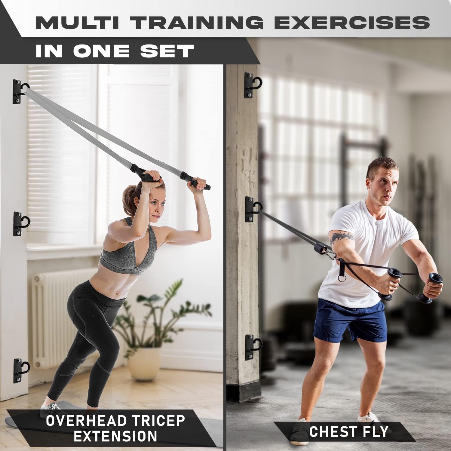 VERSATILE AND EASY TO INSTALL: Our wall anchors include three hooks on plates, screws, washers, and plastic anchors for straightforward set up on any wall. Appropriate for various sorts of partitions and appropriate for any residence health club.