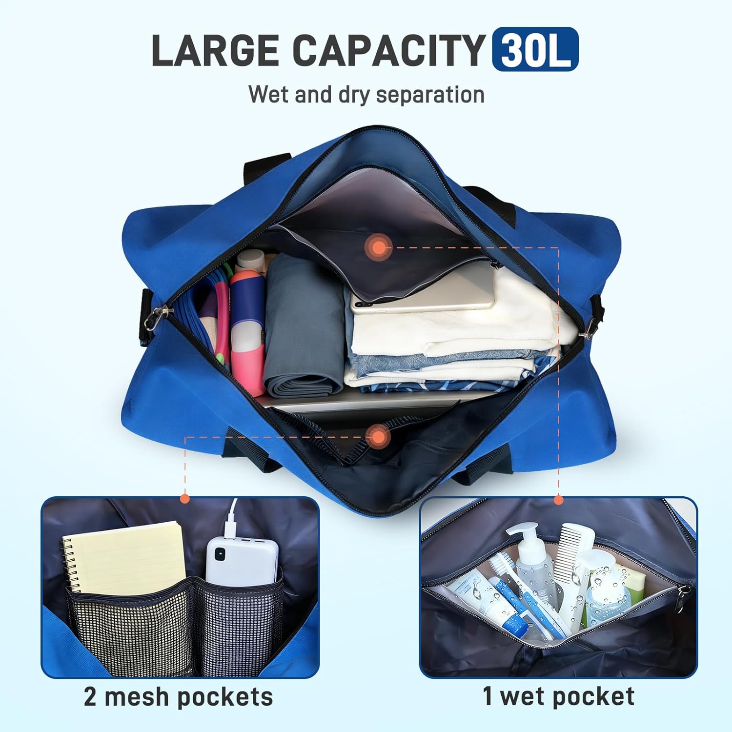 【Keep Organized Inside and Out】 Exterior: A devoted cellphone pocket, an additional‑massive facet pocket for giant water bottles, and a separate shoe compartment preserve usually‑used objects helpful and your clear gear protected. The rear baggage strap slides securely over a suitcase deal with to unlock your fingers. Inside: The inside compartment features a waterproof sleeve for damp towels or toiletries, plus mesh pockets to maintain keys, pockets, and small necessities and inside straightforward attain—no extra digging round.