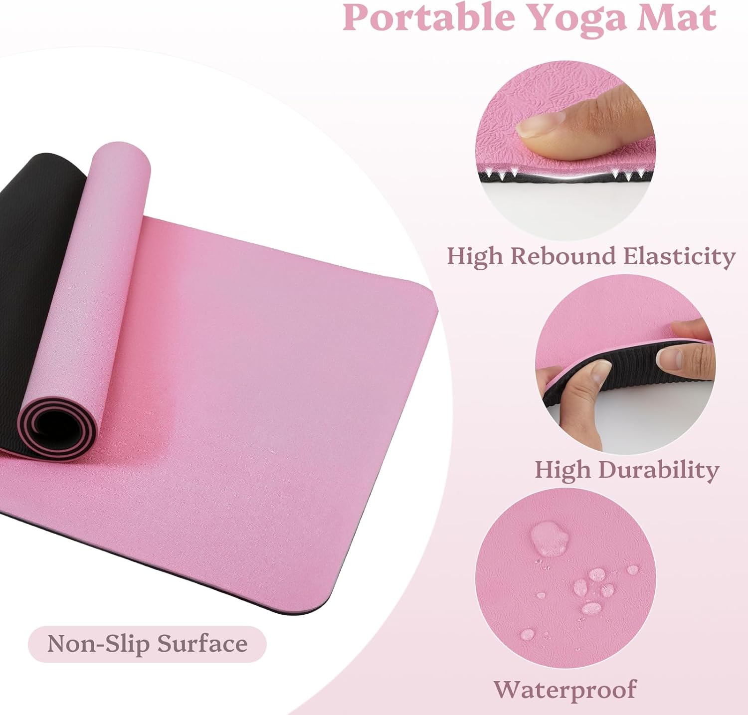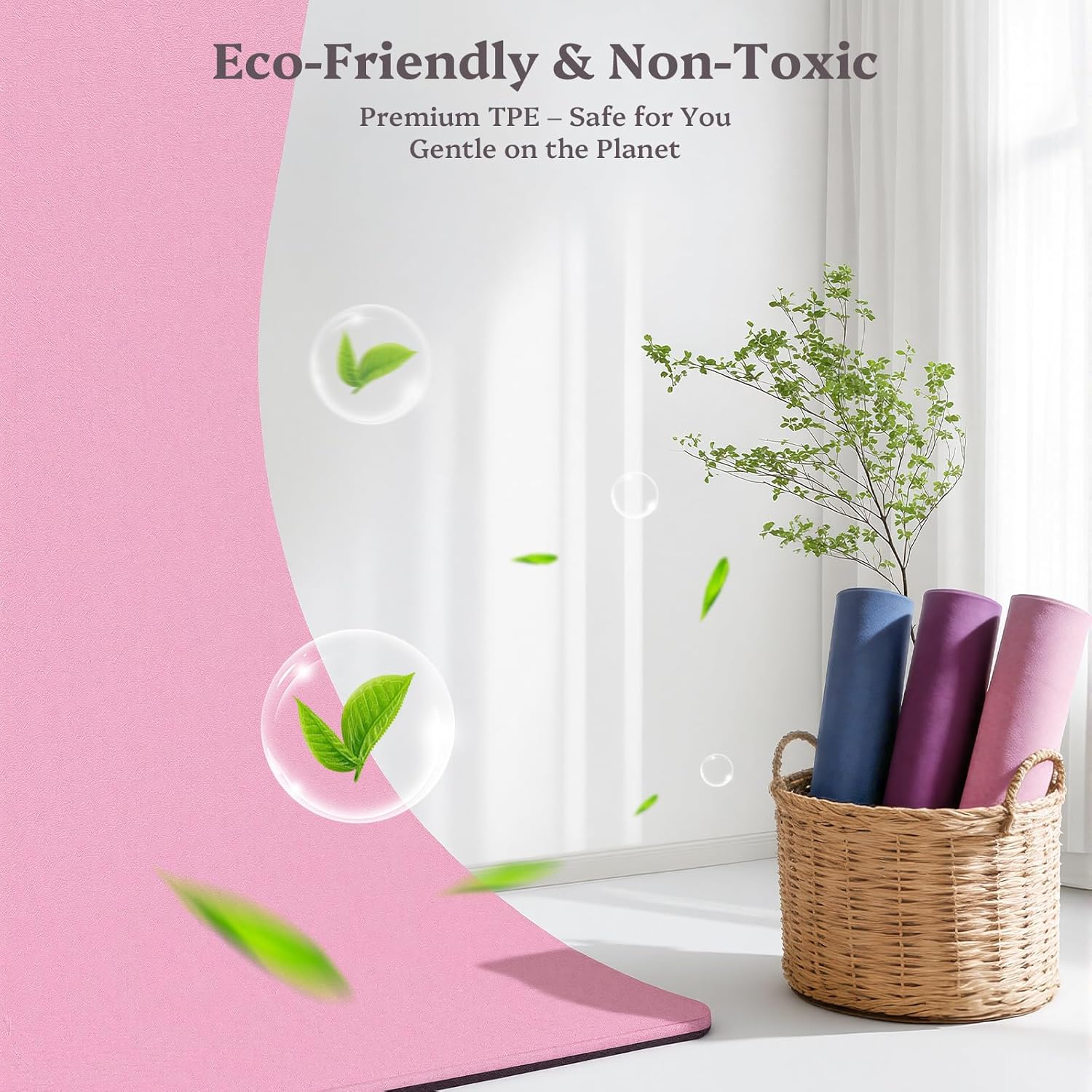 Premium Sturdy TPE Materials: Our yoga mat is made from TPE materials, which is versatile, sturdy, and tear-resistant, and can be softer, skin-friendly, and light-weight. It’s recyclable