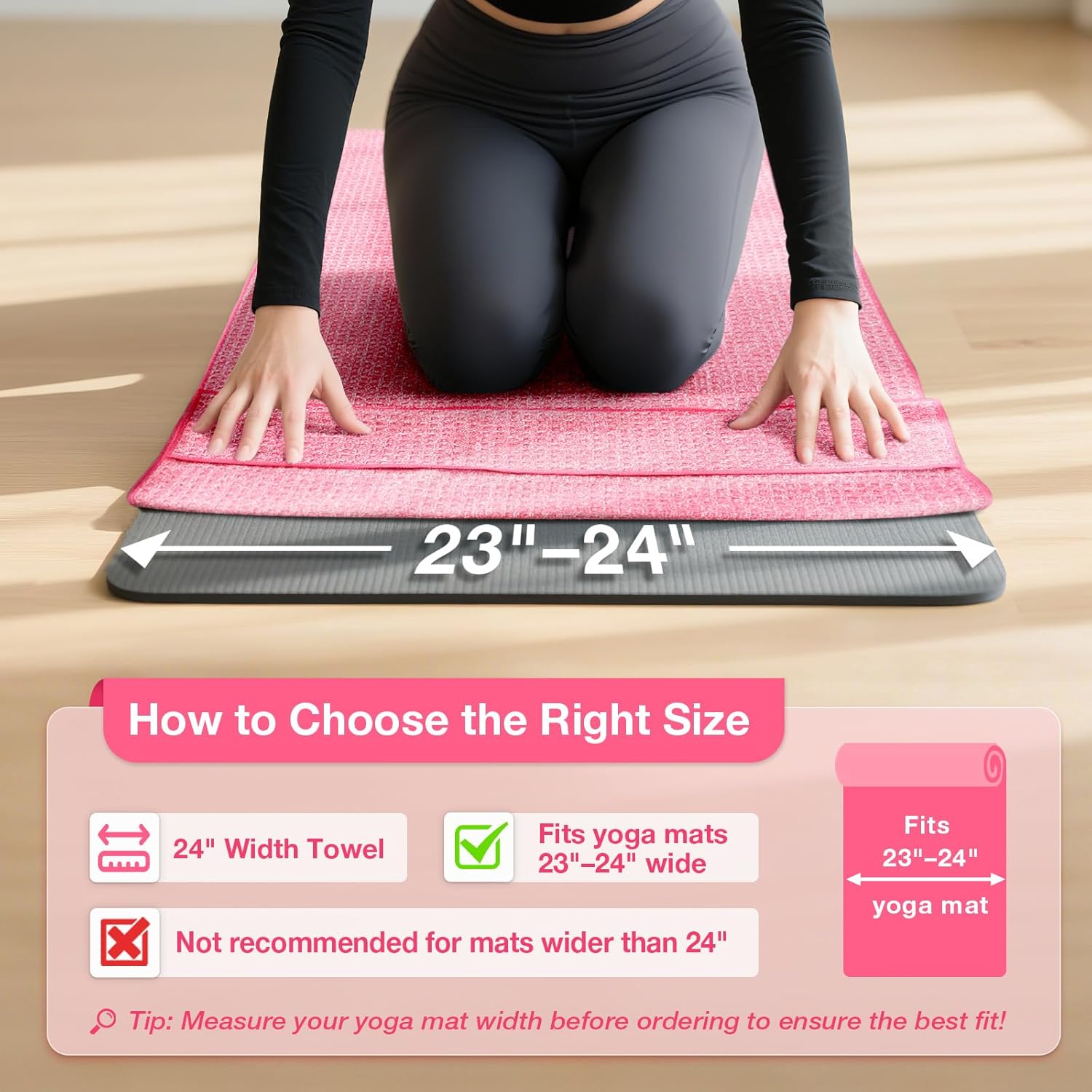 【ULTRA-LIGHT】: Dimension: 72″ (183cm) lengthy X 24″ (61cm) large .Thinner than an everyday towels, extra like a sheet. The elastic band on the again of the towel can successfully roll up and repair the towel, you possibly can pack your yoga towel for straightforward carrying and storage
