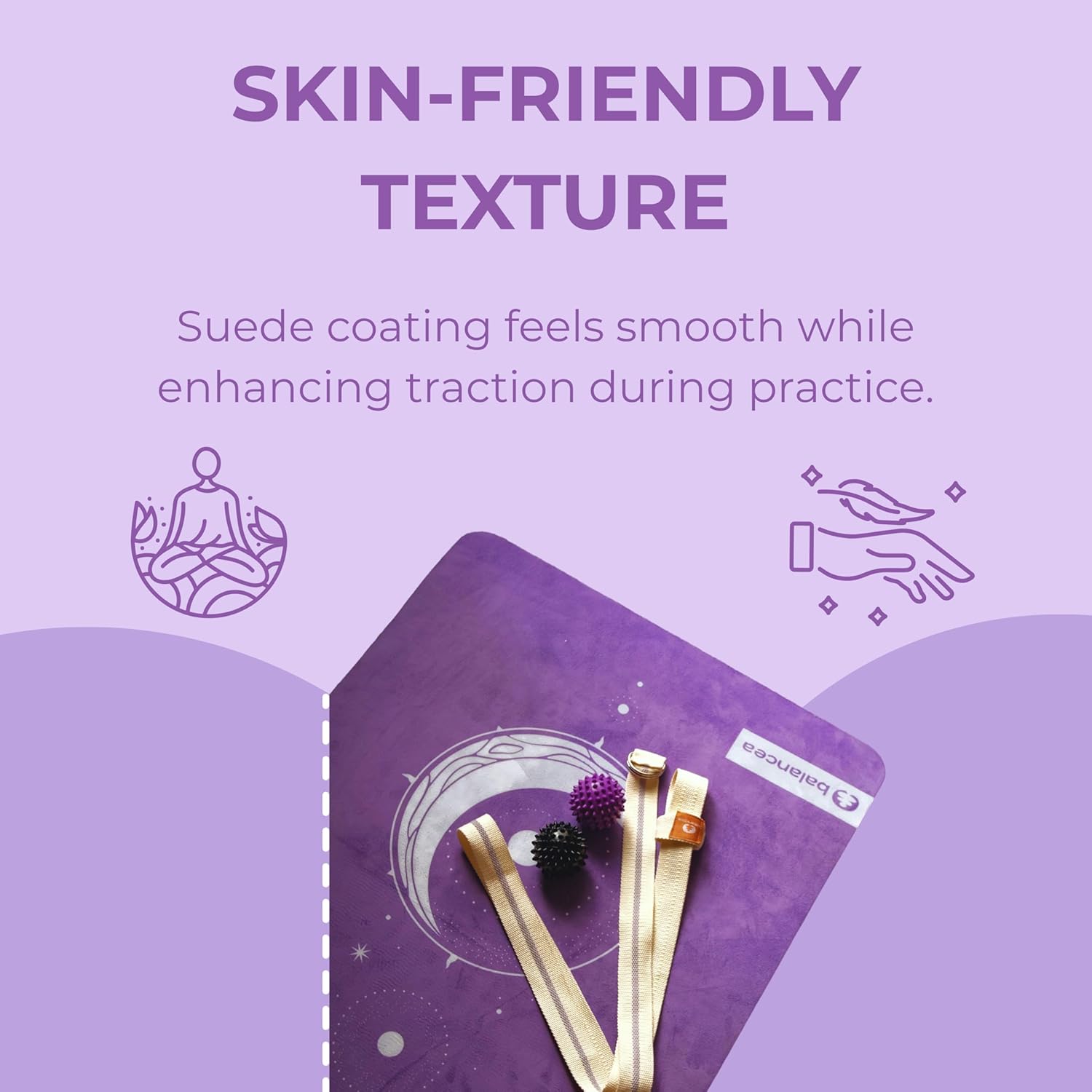 NON-SLIP & STABILITY: Non-slip health mat with yoga strap with suede prime and TPE base provides sturdy traction; ultimate nonslip pilates or sizzling yoga mat