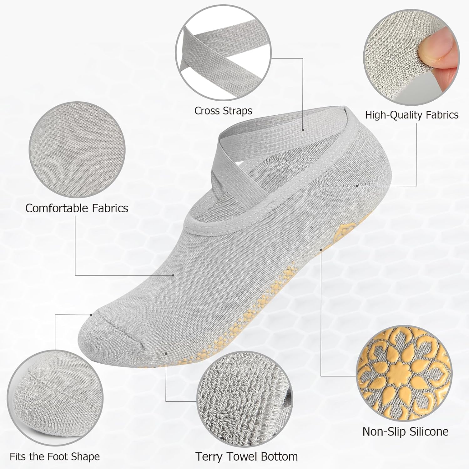 Yoga Socks with Grips for Girls – Non Slip Pilates Socks with Grippers on Backside, Grippy & non skid Barre Hospital slipper sticky Socks for Exercises Ballet,Dance,House,Coaching