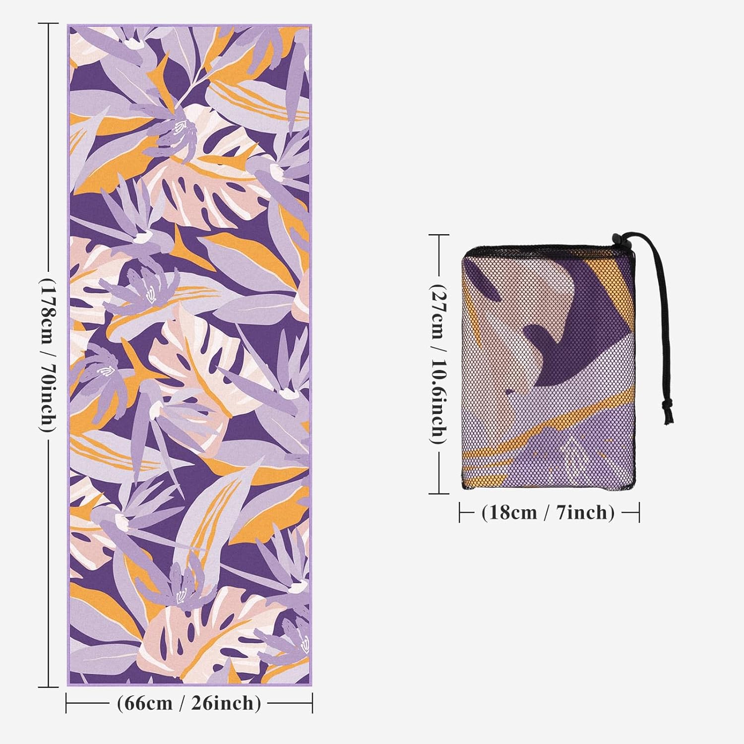 Moveable Measurement: Measures about 70 x 26 in and weighs about 1 lb, light-weight and moveable. This yoga towel might be simply folded right into a mesh bag, excellent for journey, health lessons and out of doors actions.
